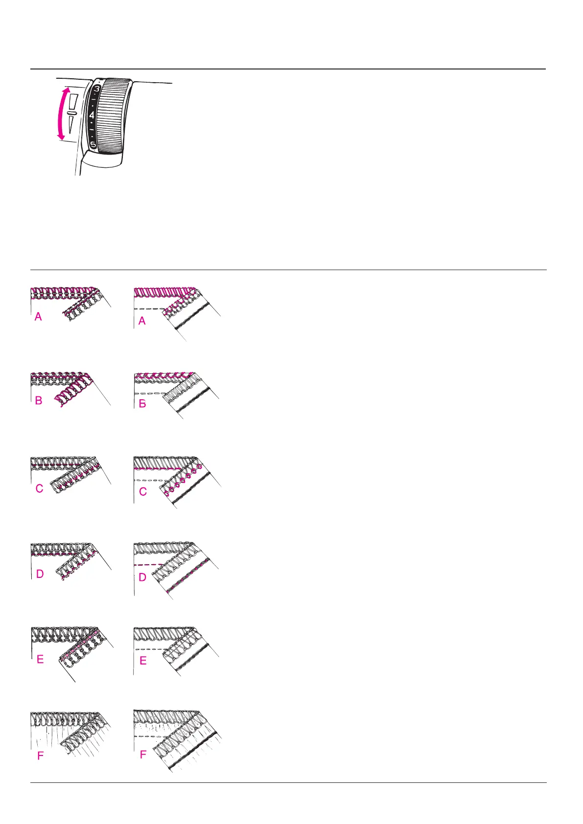Loosen upper and lower looper thread tensions, blue and red (E).