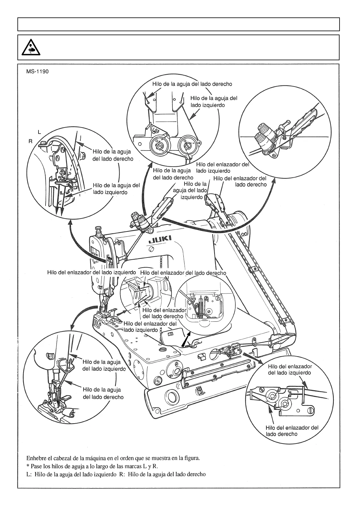 JUKI MS-1190M - Modo de Enhebrar el Cabezal de la Máquina