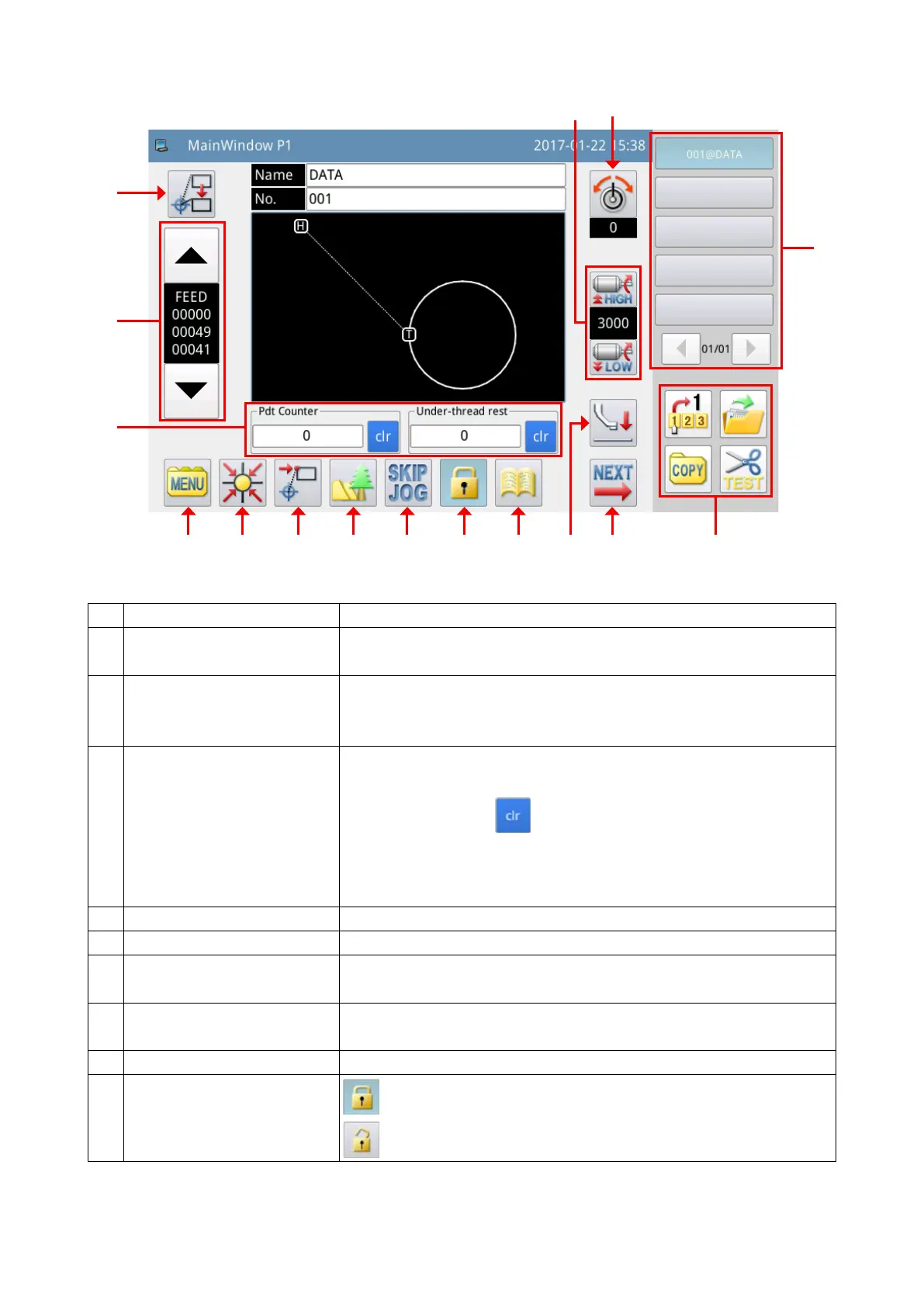 G Pattern display key This function is used for displaying detailed message of the sewing