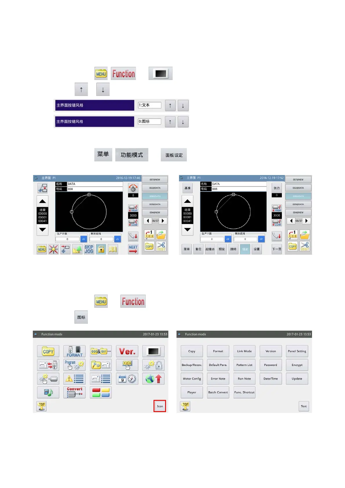 <Screen display style : Icon display> <Screen display style : text display>