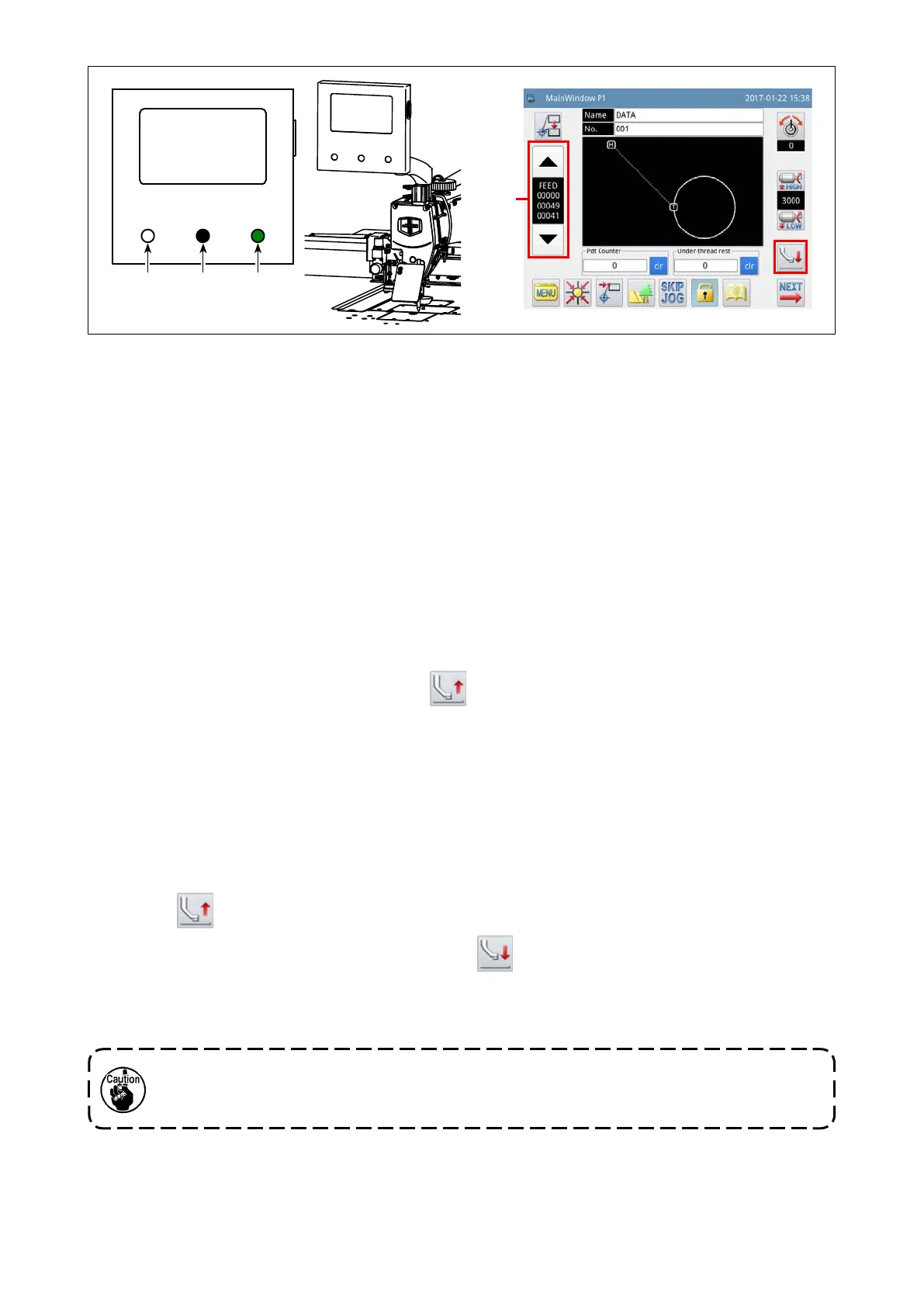 head. Be aware touching the start button is very dangerous since the sewing machine starts