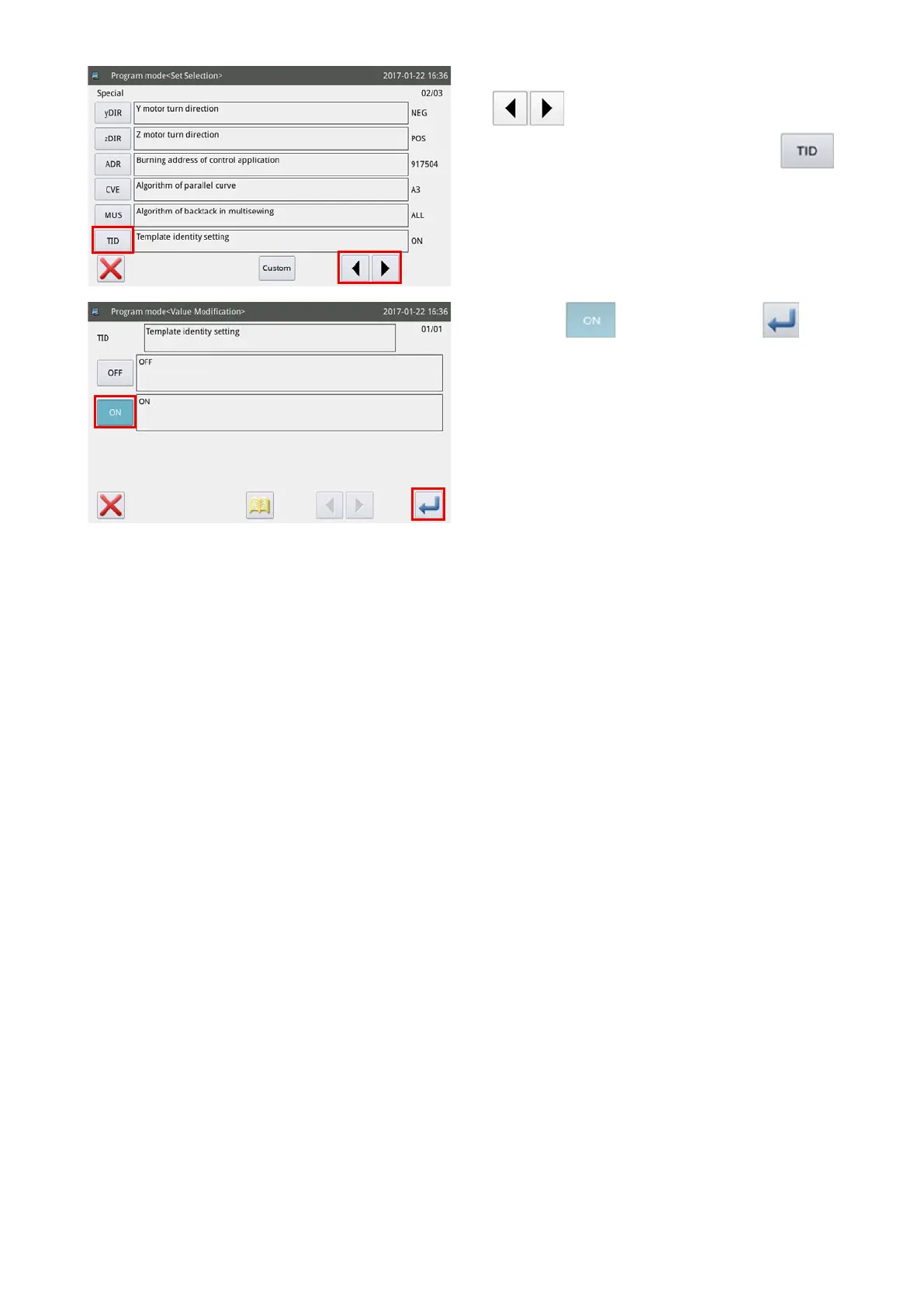 "ON" refers to the "enable" of the template identi-