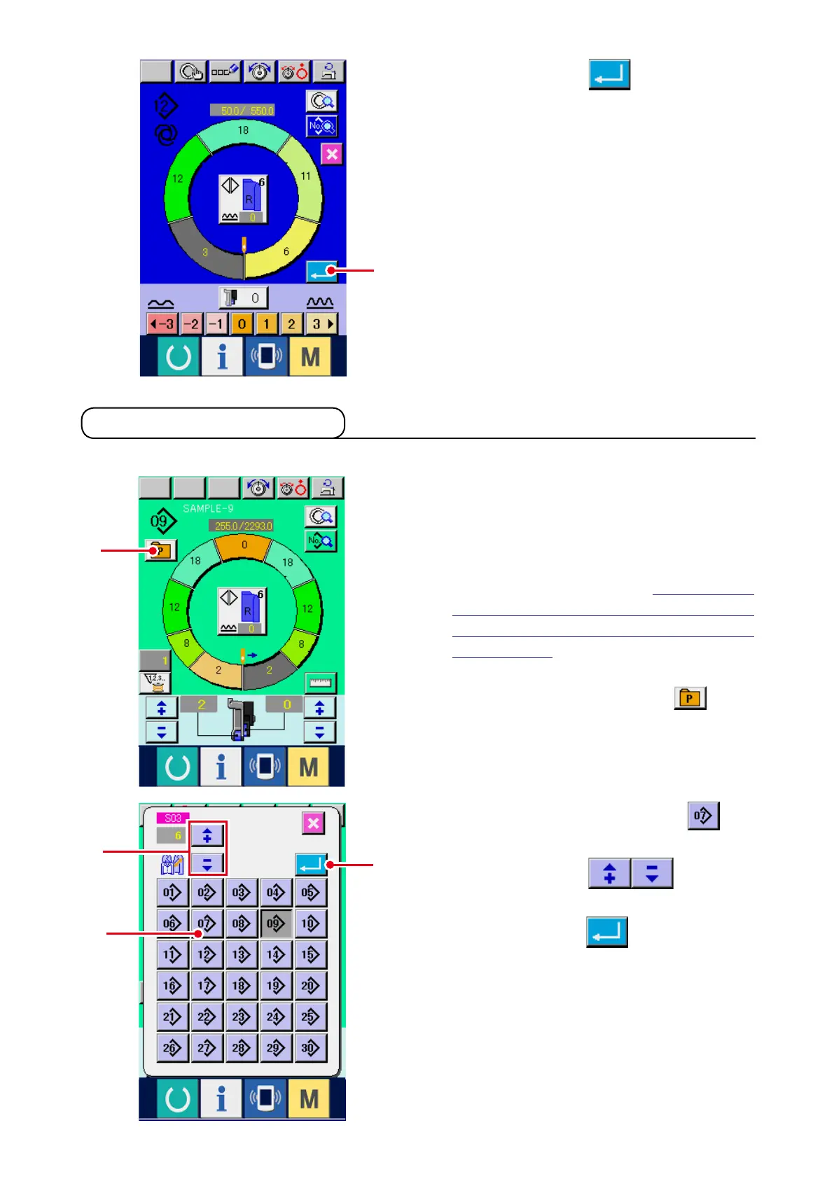 (1) Directly calling the pattern from sewing screen <Direct pattern selection>