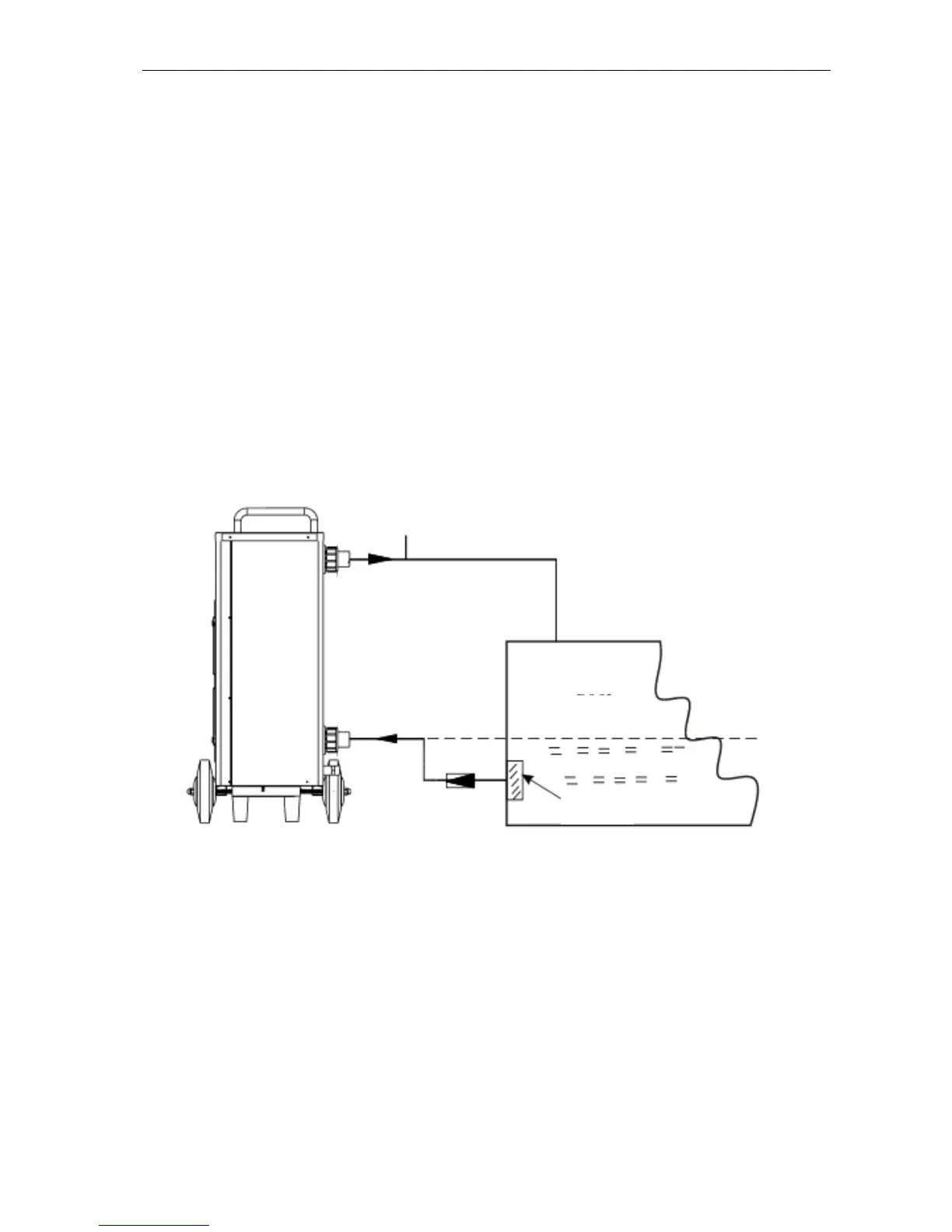 Anslutningen för ingående vatten måste vara 20 cm under vattenytan och vattenslangarna måste vara fria