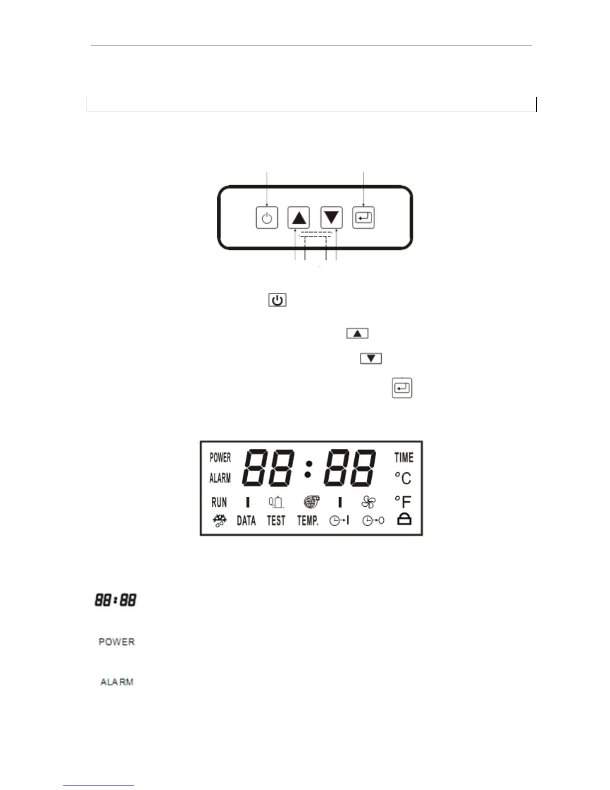 För att minska temperatur, tid eller parameter en enhet, tryck på
