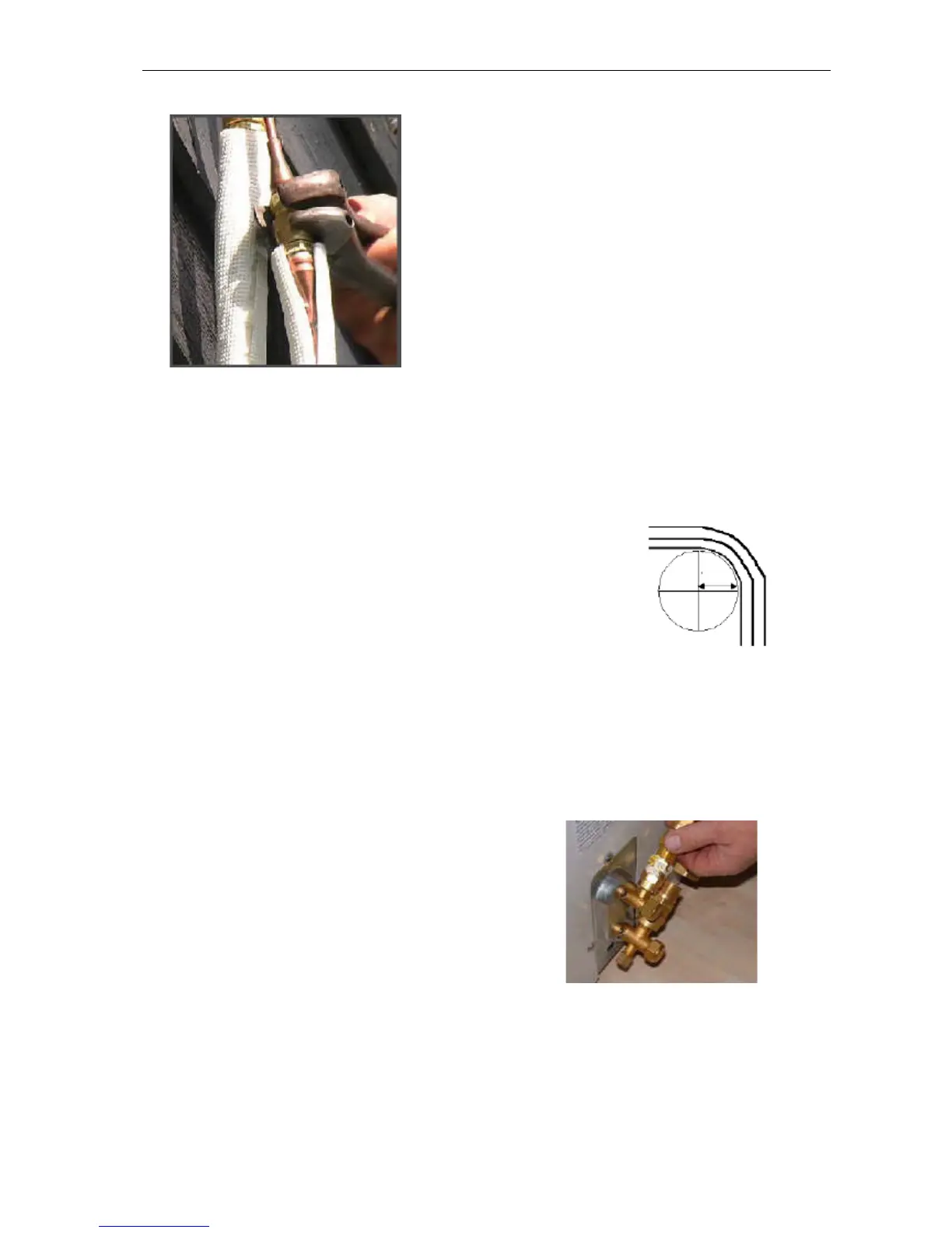 zakończeniem podłączania rur. Jeśli podczas zginania rury wystąpi wyciek, należy odkręcić złącza tak,
