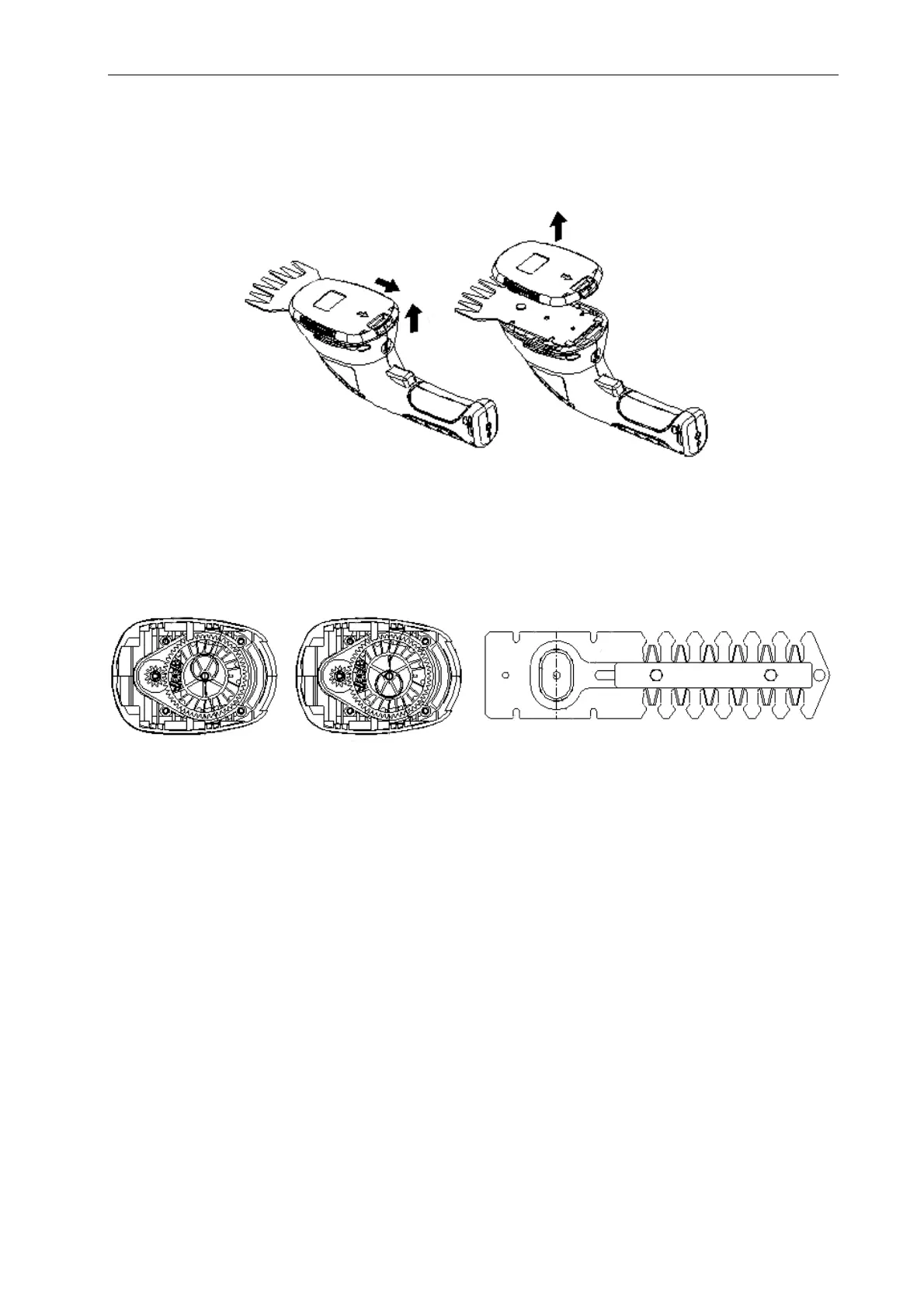 6. Tilpass de fire uttakene til trimmerens styrestift. Sørg for at vekseldrevet monteres riktig mot