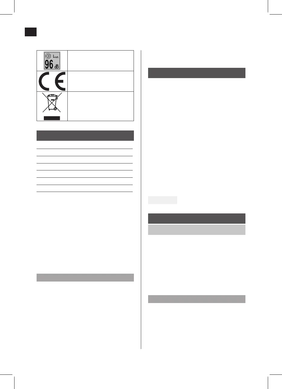 Sound power level, LwA* 94 dB(A), K=3 dB