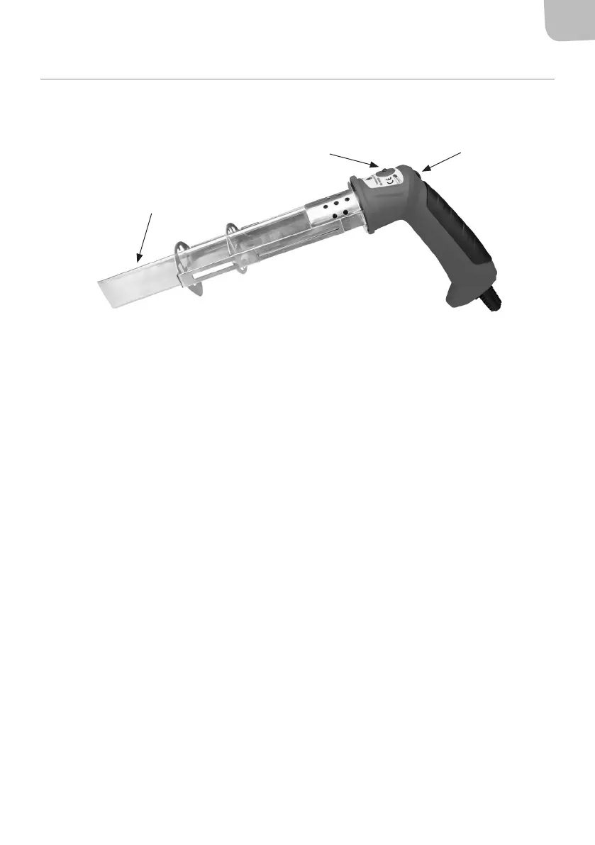 The power indicator (B) comes on when the hot knife is started and remains on until the knife is