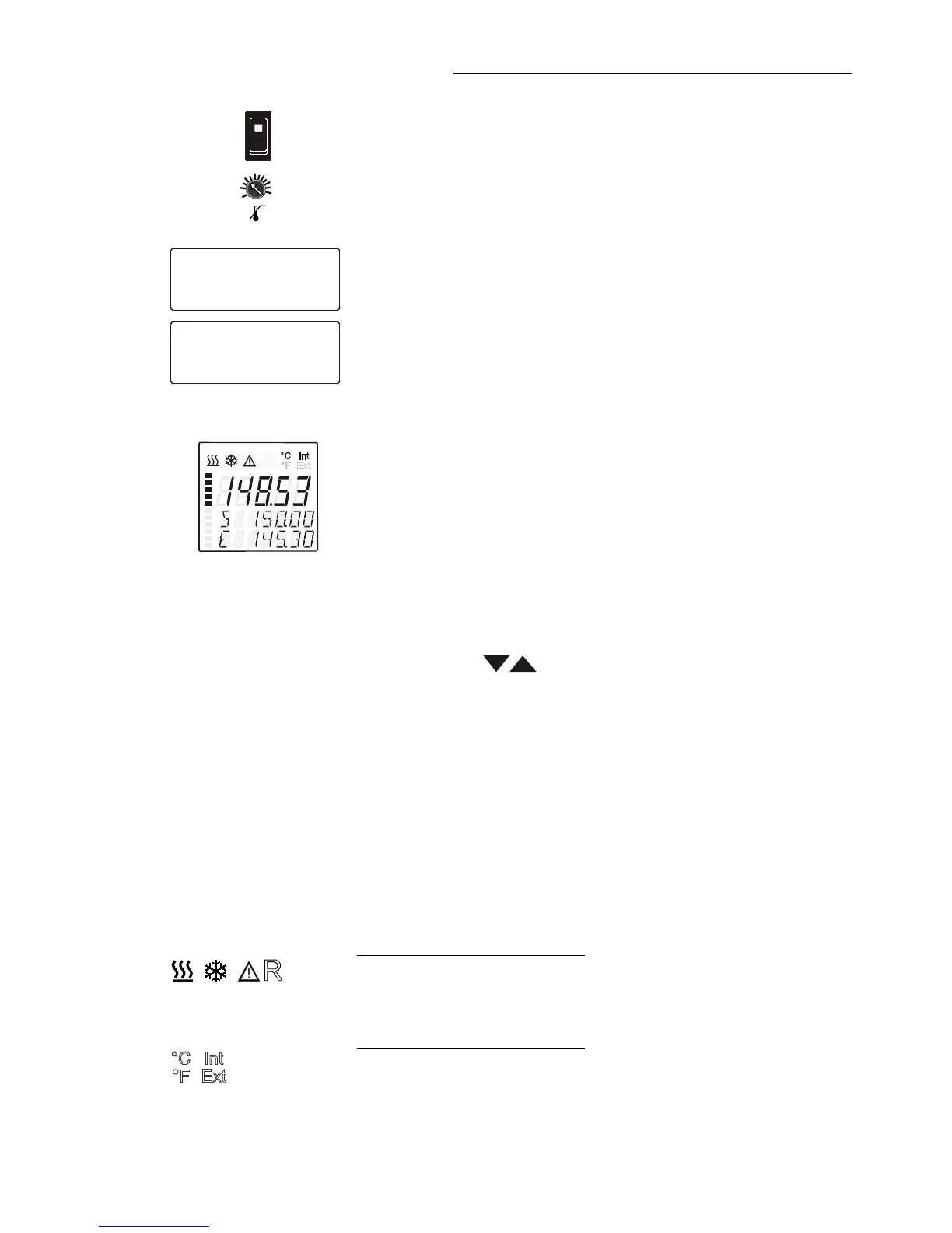 Temperature indication Internal or External actual value