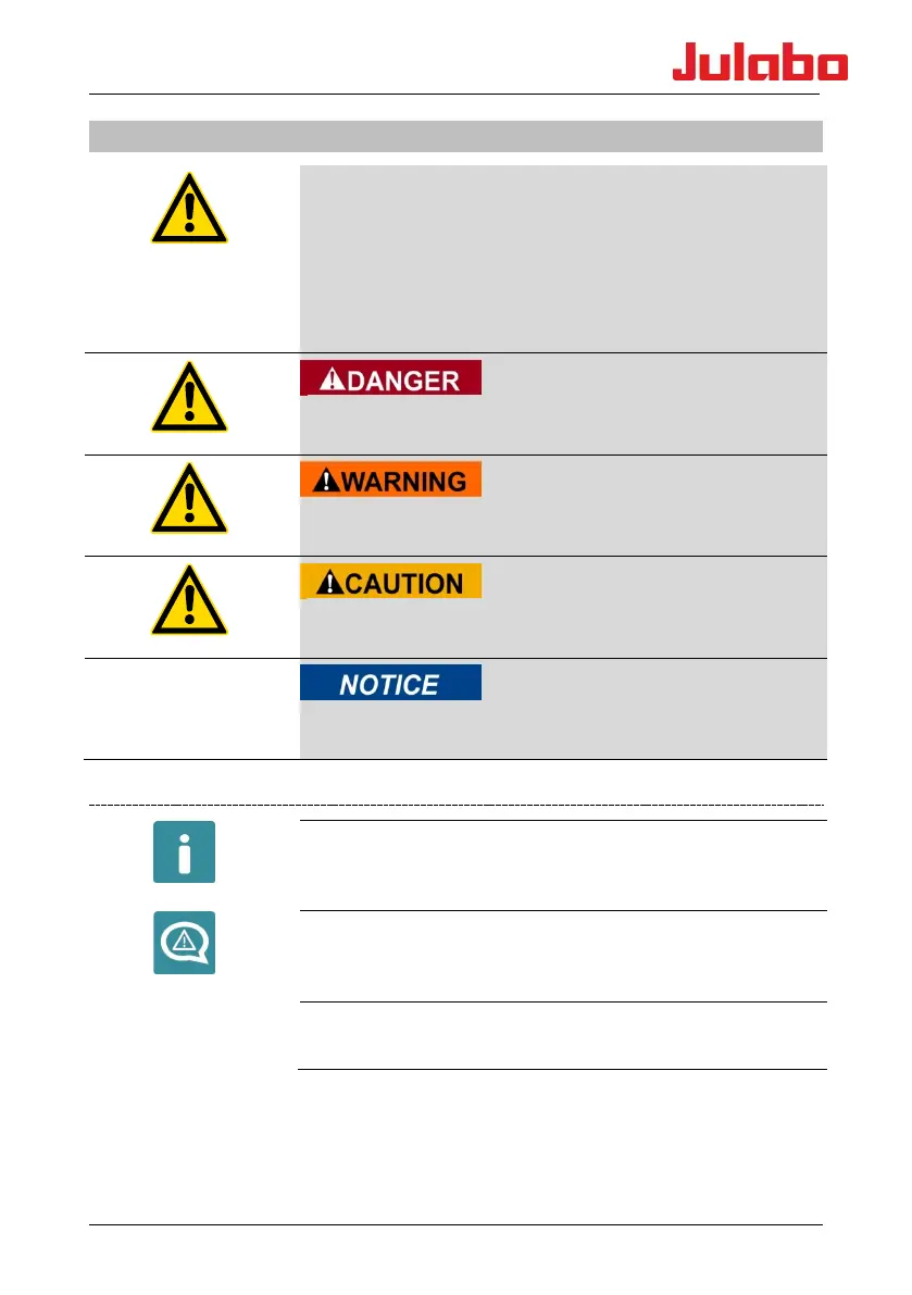 The significance of the danger is classified with a signal word. Read