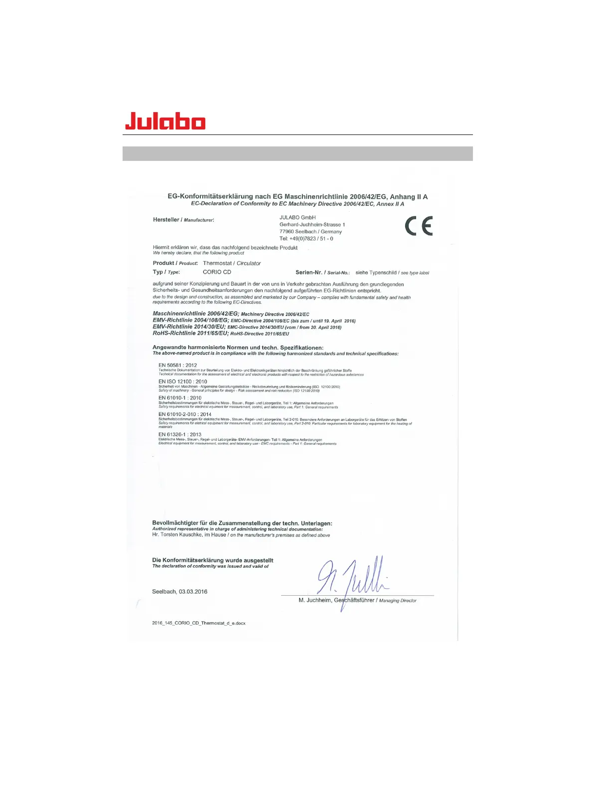 Julabo CORIO CD - EC Conformity