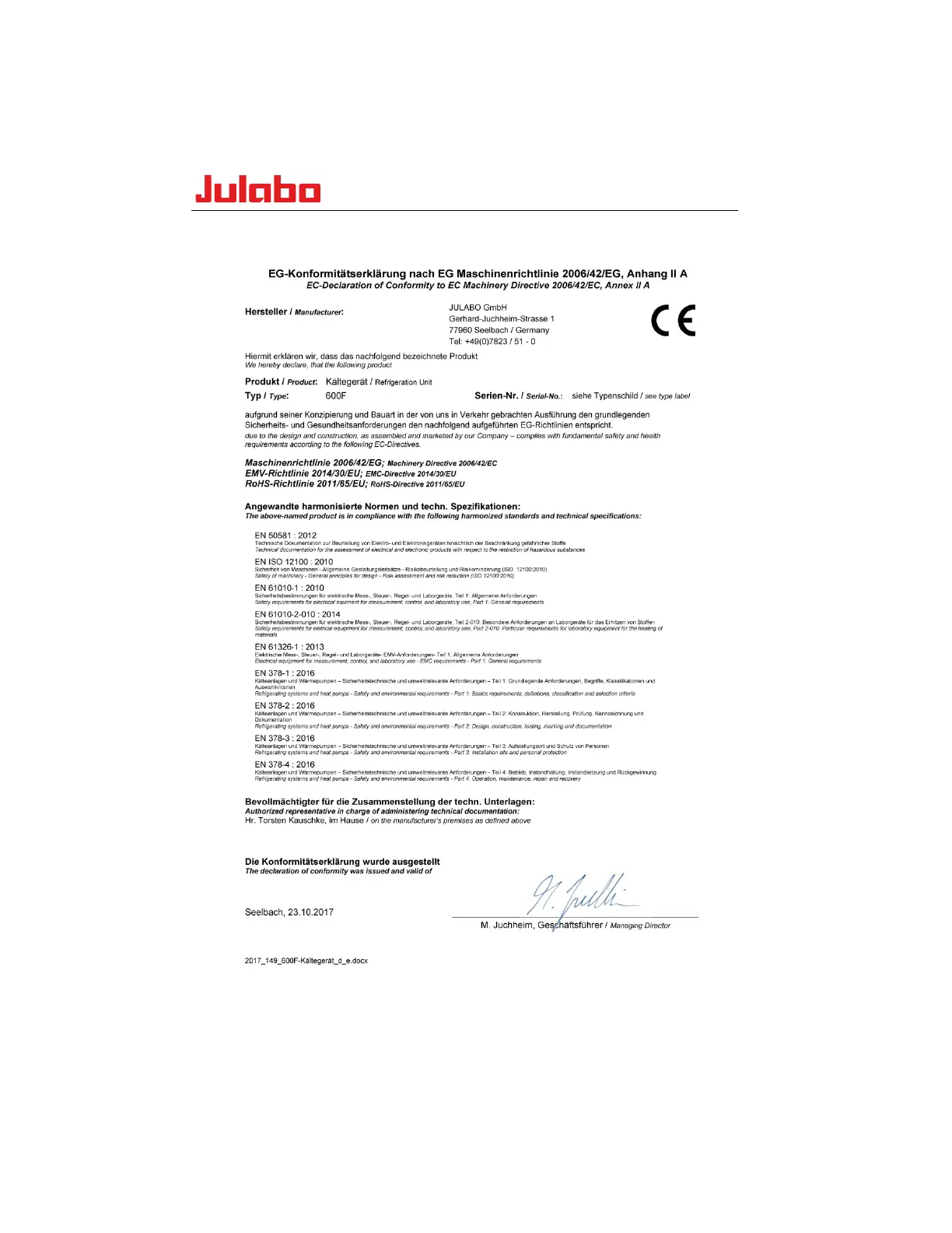 Other manuals for Julabo CORIO CD