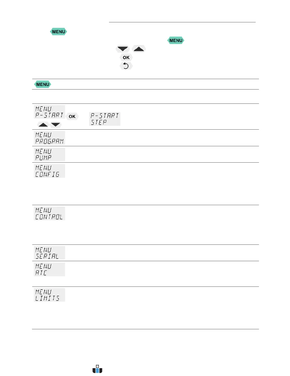 3. Press the key to change to menu level 2.