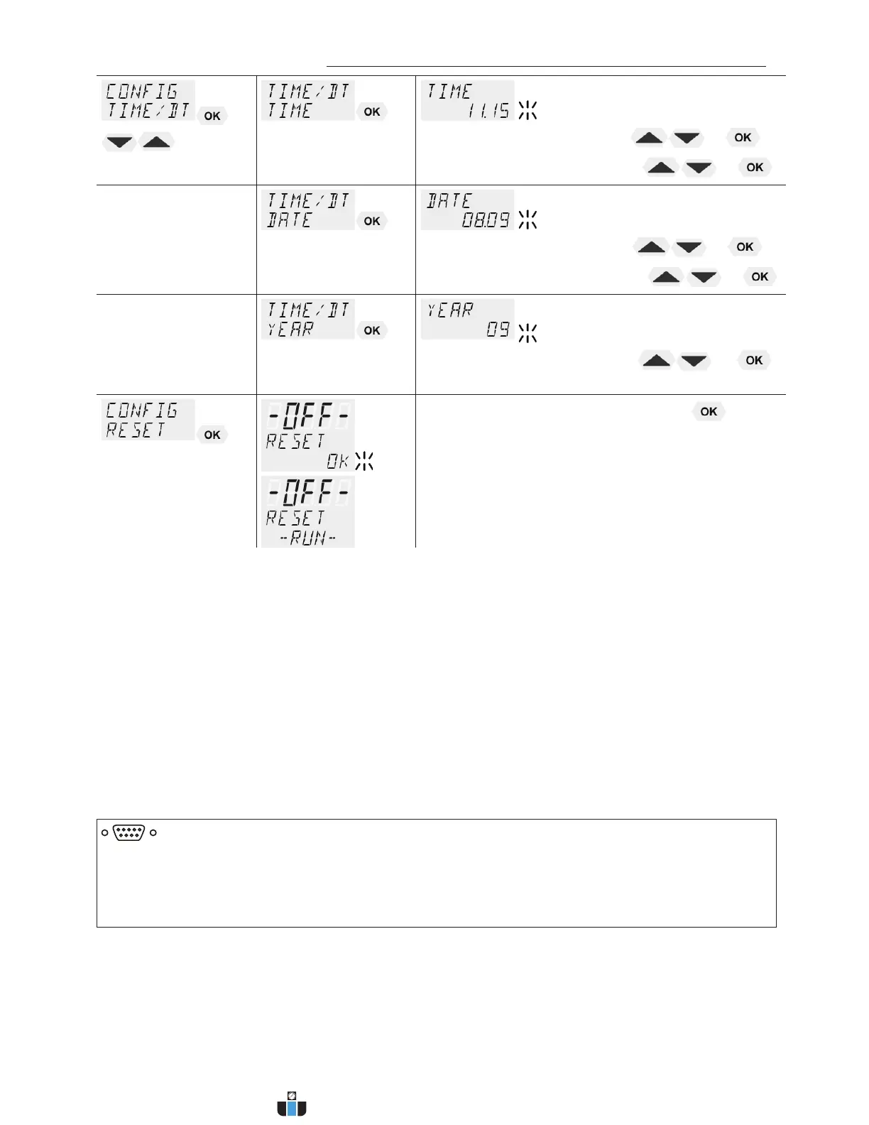 RESET returns all set values to the factory setting