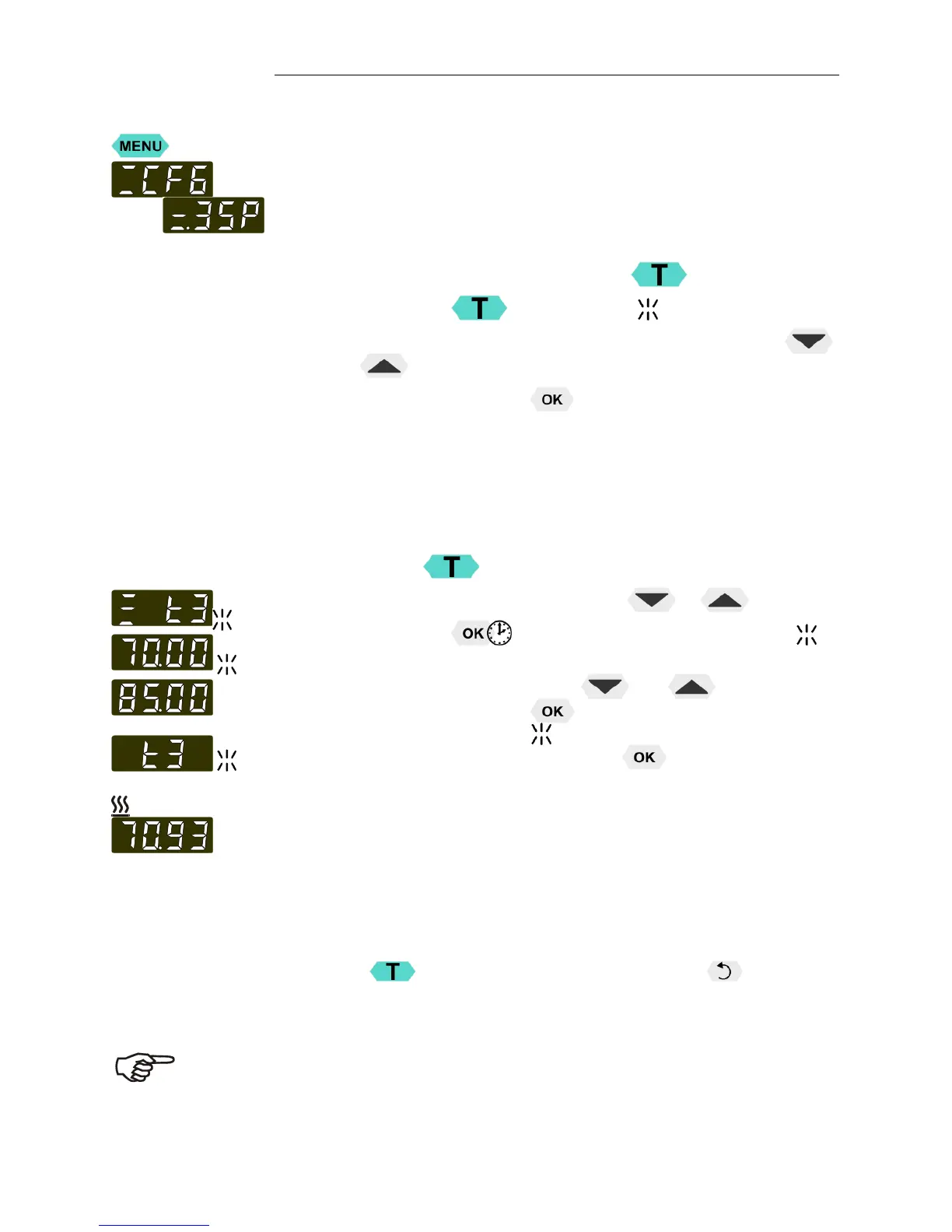 2. Select the setpoint >t3< by pressing or .