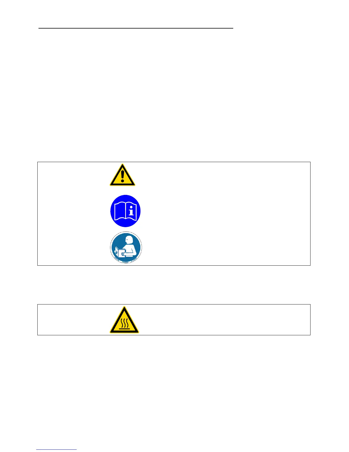 There are thermal dangers: Burn, scald, hot steam, hot parts and surfaces that can be