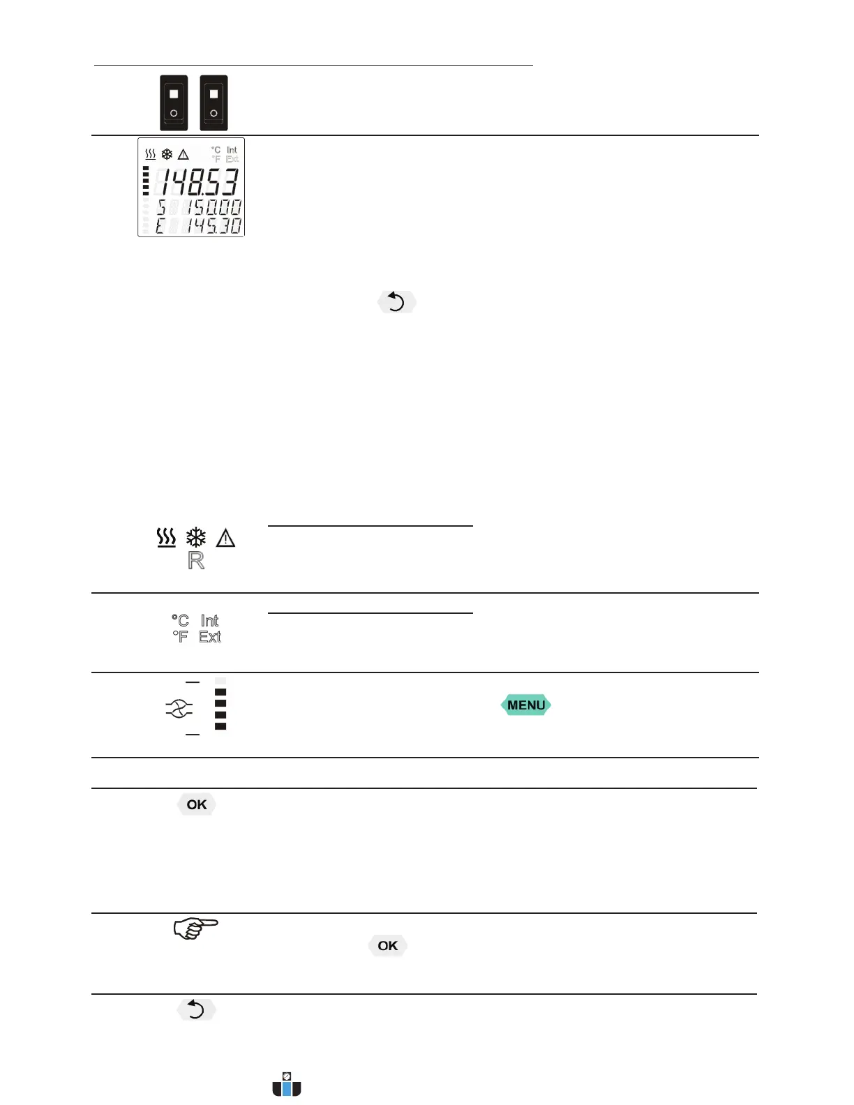 Temperature indication Internal or External actual value