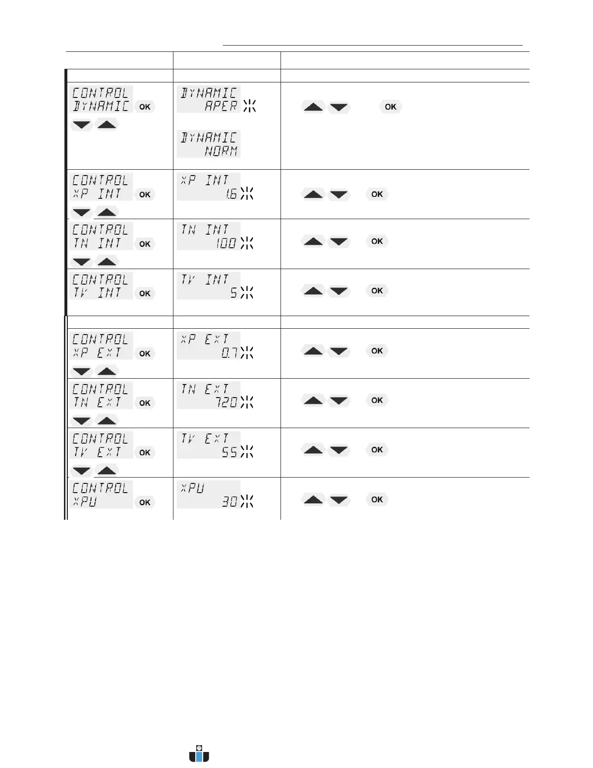 x The parameter flashes, set by pressing