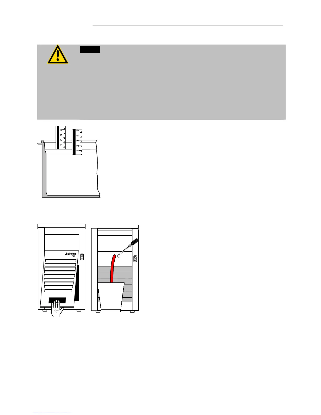 • Pay attention to the thermal expansion of bath oil during heating to avoid