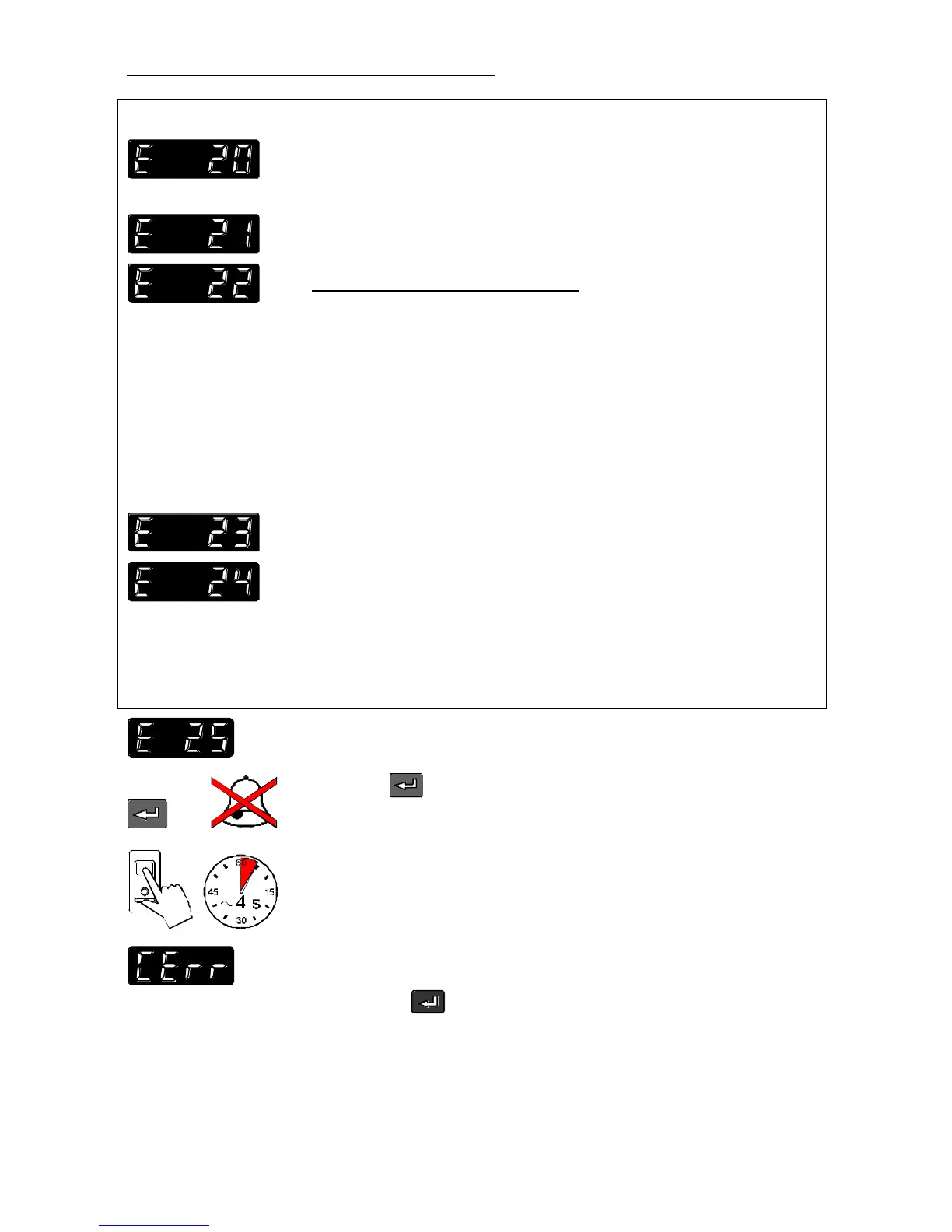 Warnings without a complete shutdown of the unit: E 21 to E 24