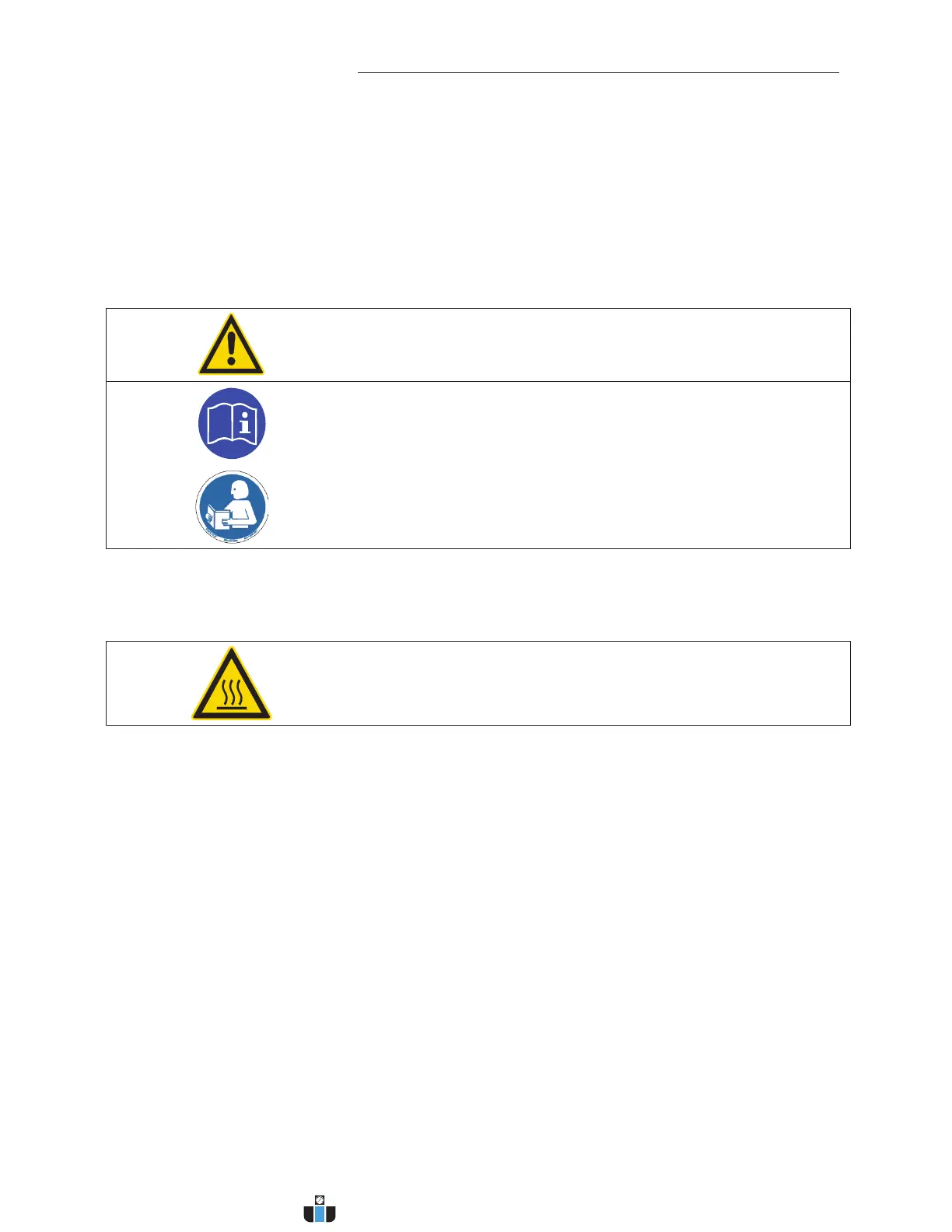 There are thermal dangers: Burn, scald, hot steam, hot parts and surfaces that can be touched.