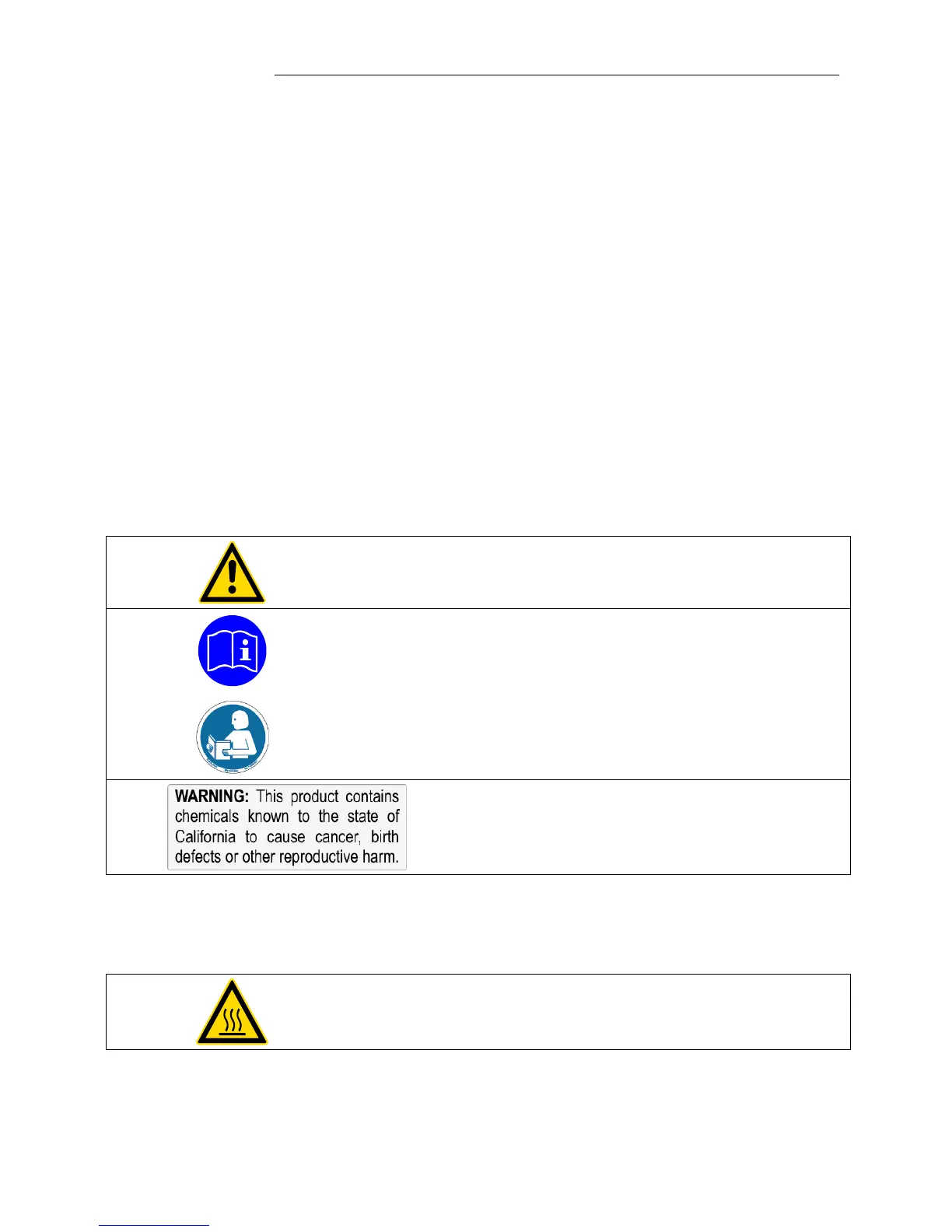There are thermal dangers: Burn, scald, hot steam, hot parts and surfaces that can be