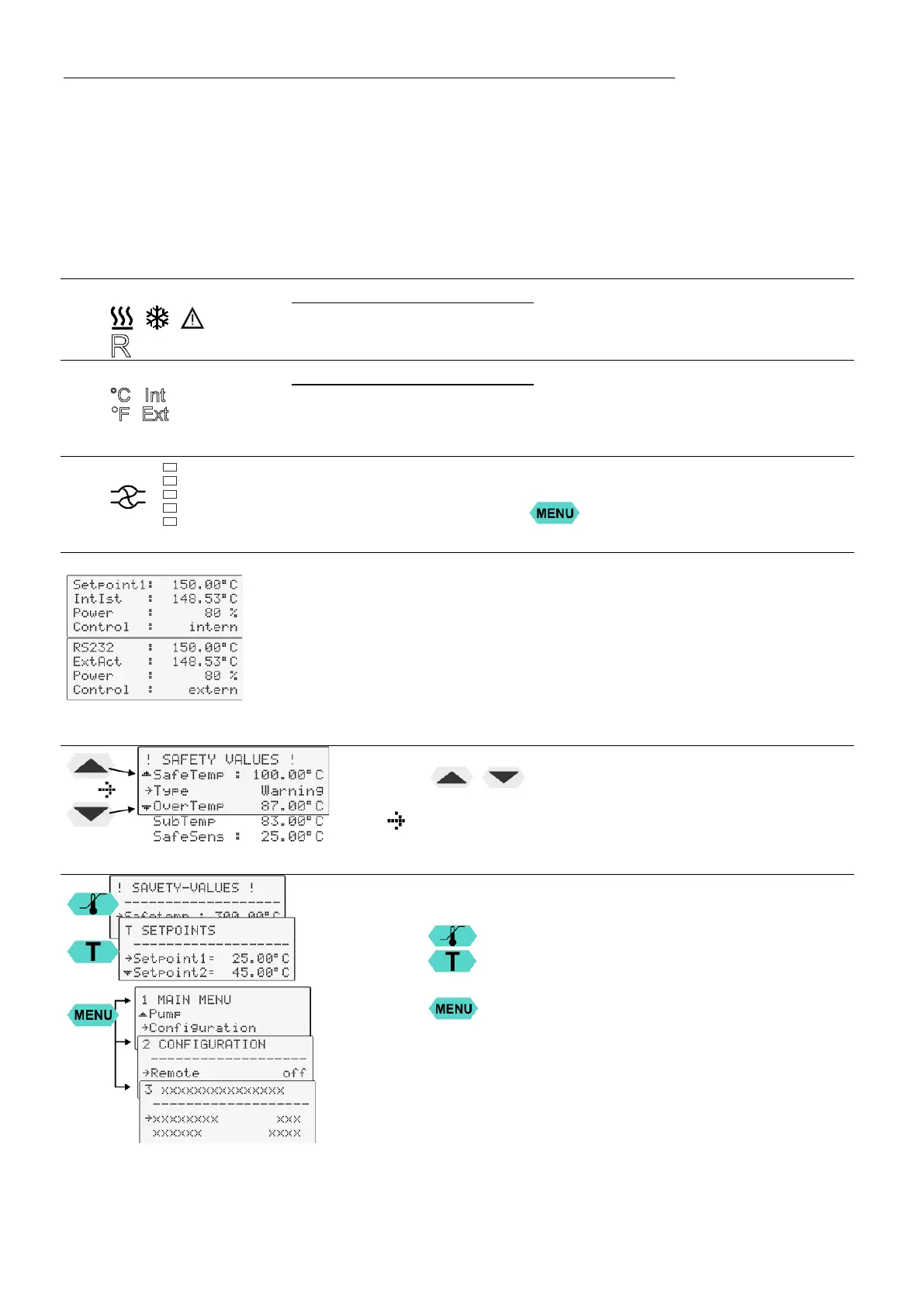 Temperature indication Internal or External actual value