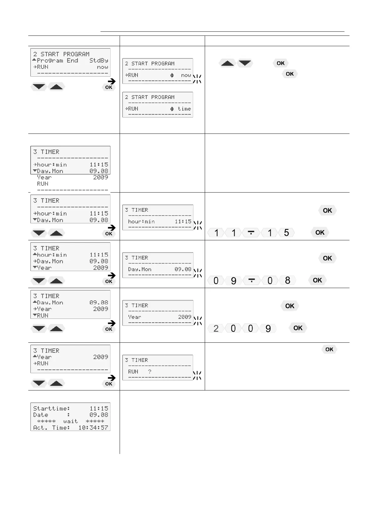 • Set starting time using the numeric