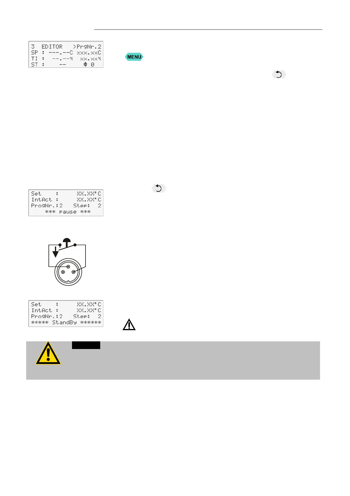 Setpoint control and timer are interrupted by breaking the contact