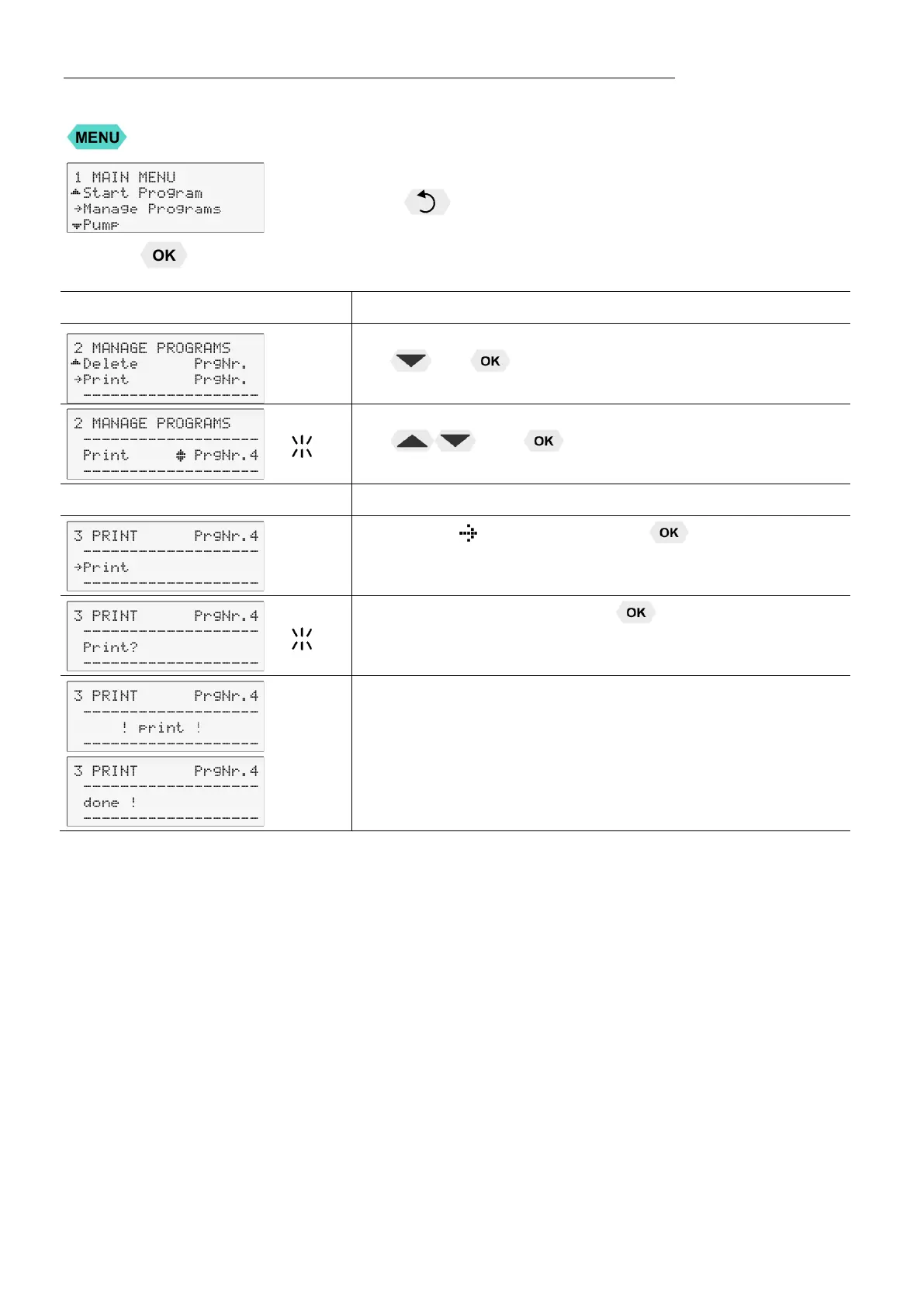• Set menu item >Print PrgNr.< by pressing