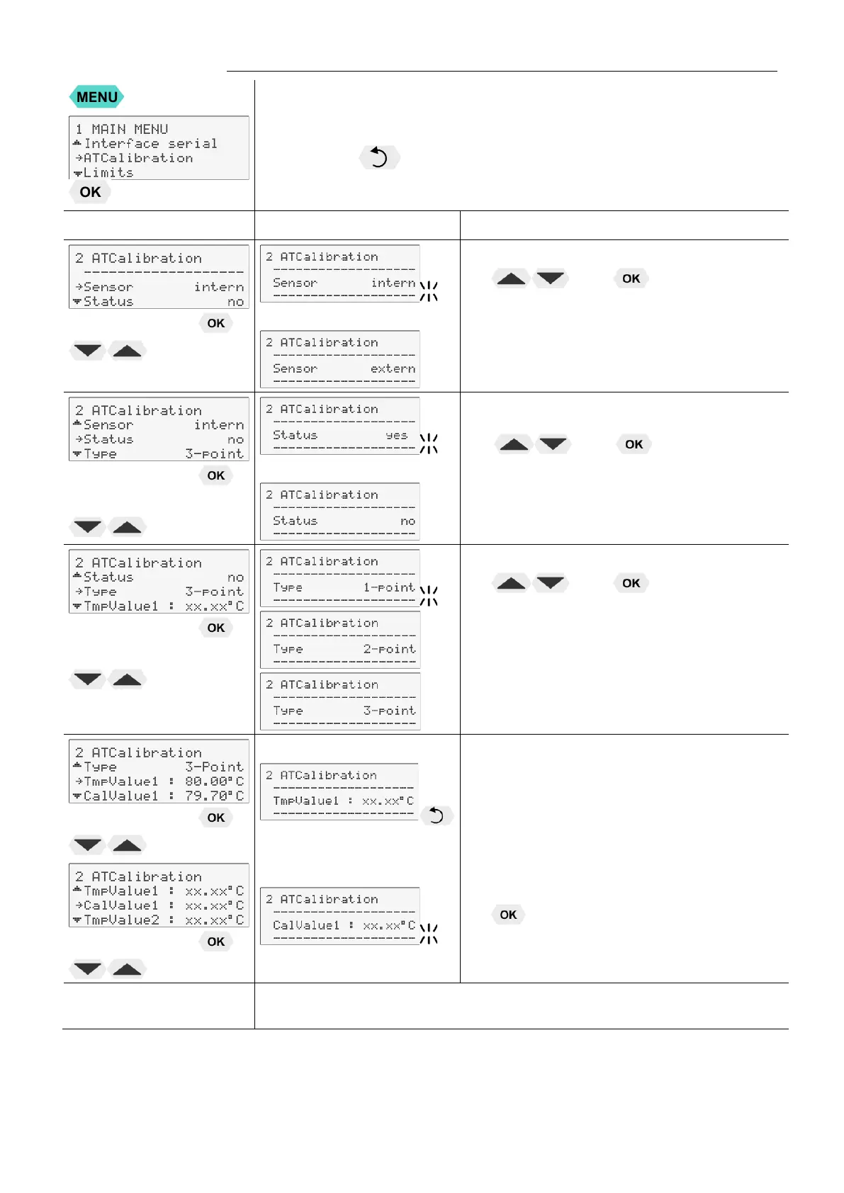 If only a 1-point calibration is carried out, the following menu items are