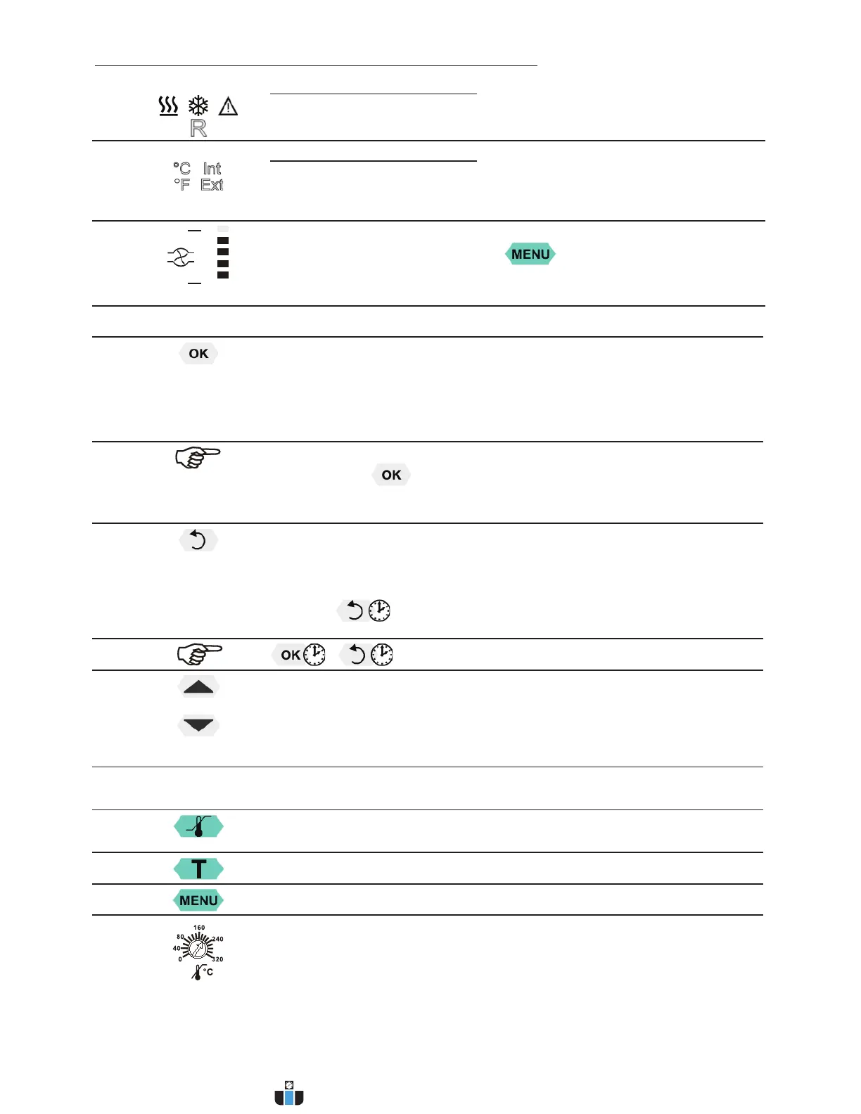1. Key: >Up / Down <temperature – increase/decrease setpoint