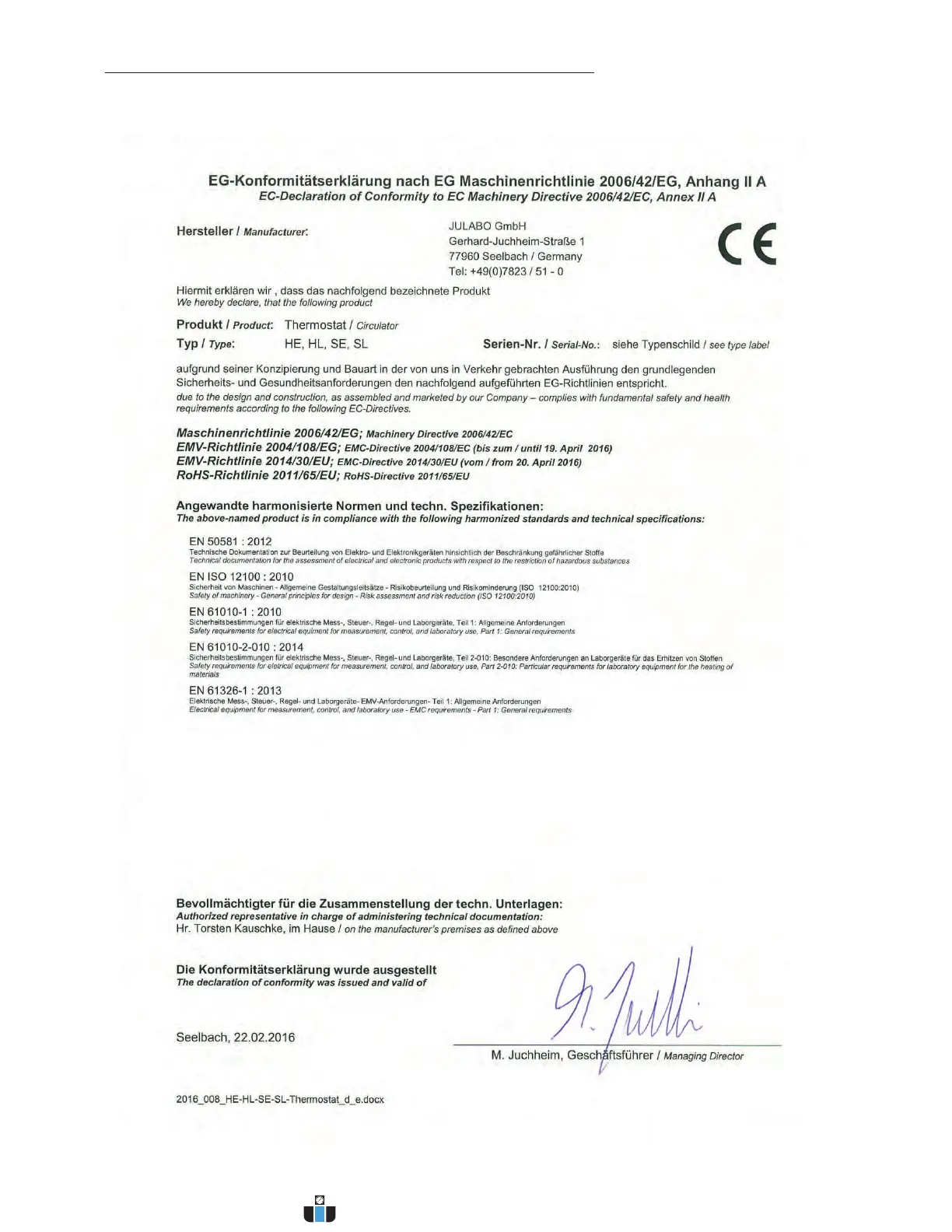 Julabo HE-4 - 2.2. EC Conformity