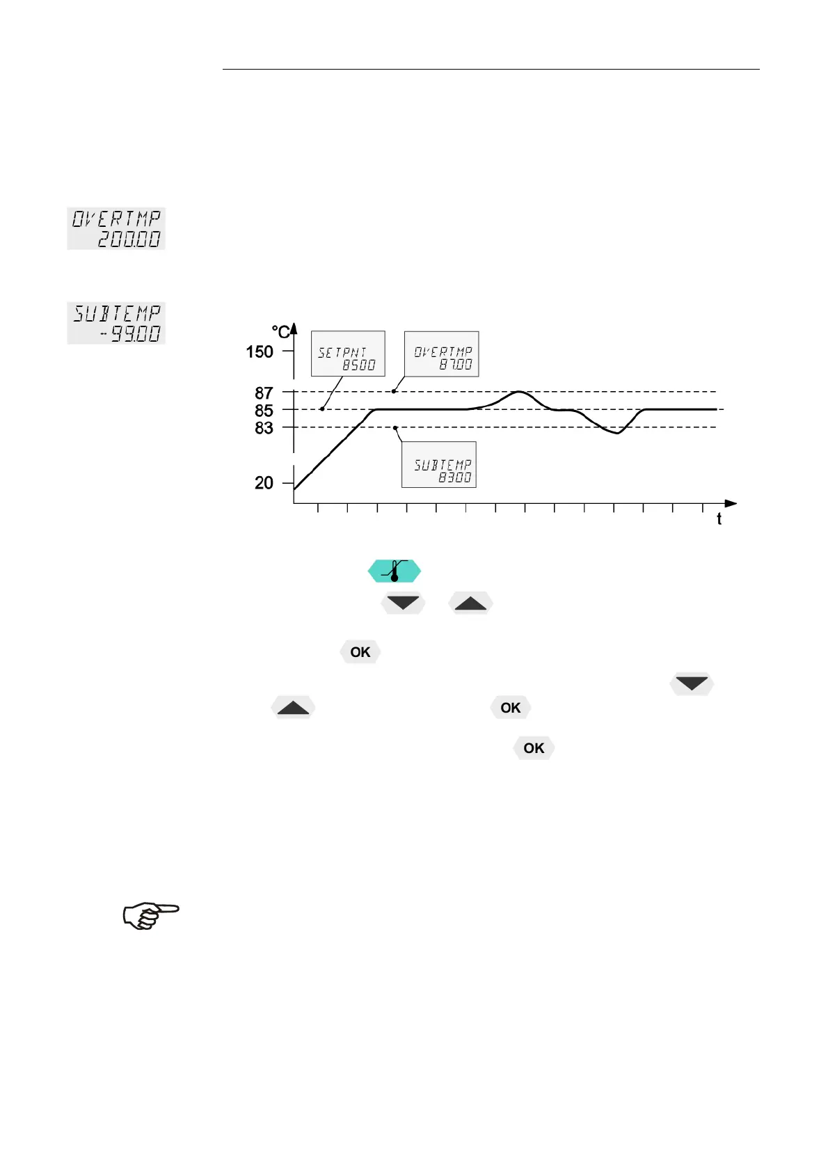 temperature warning values. In the example below the SETPOINT 85 °C is