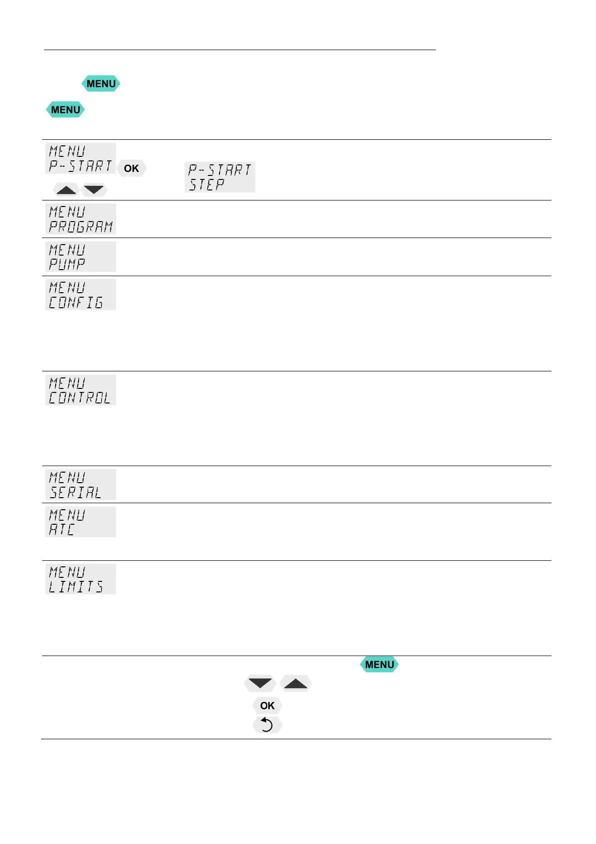 Control parameter - XP-, TN-, TV- XPU-, EXTERNAL