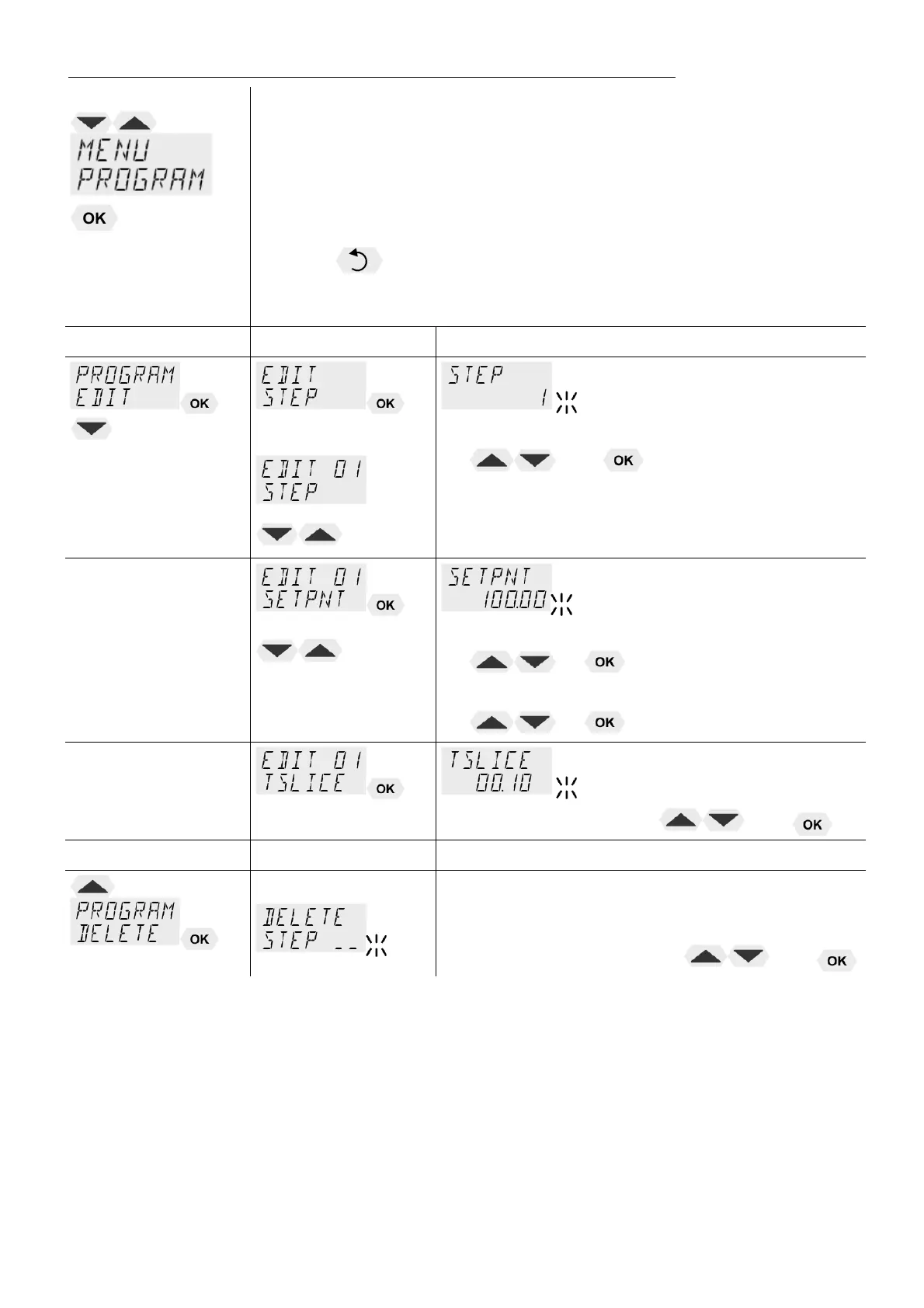 > DELETE< delete program step (01 … 10, ALL)