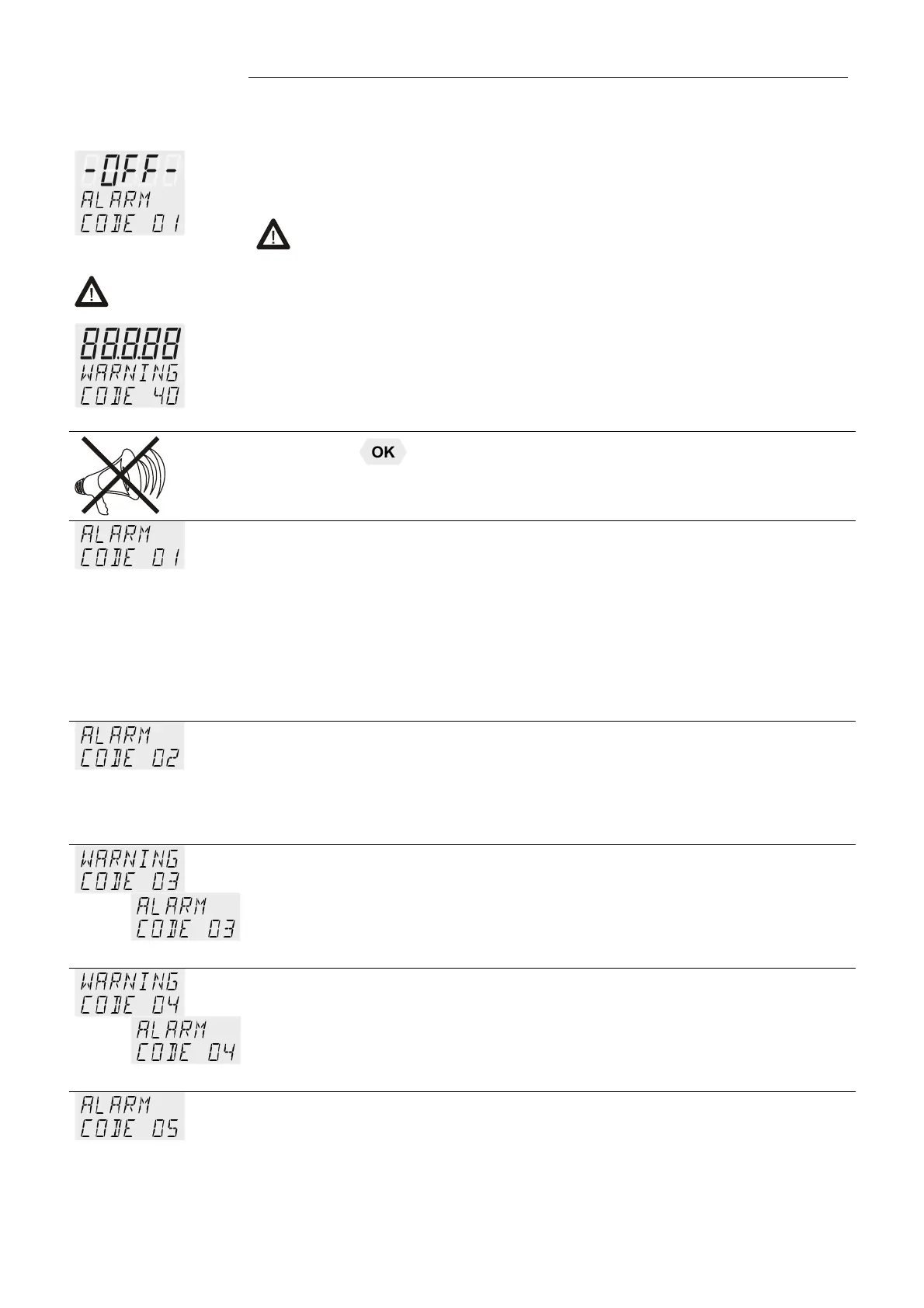 DISPLAY. The warning signal sounds in regular intervals. The messages