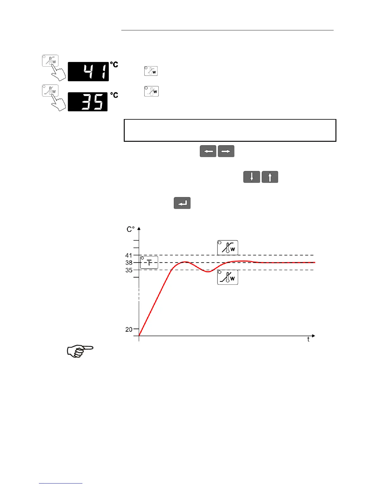 Display and adjustment of over-/undertemperature: