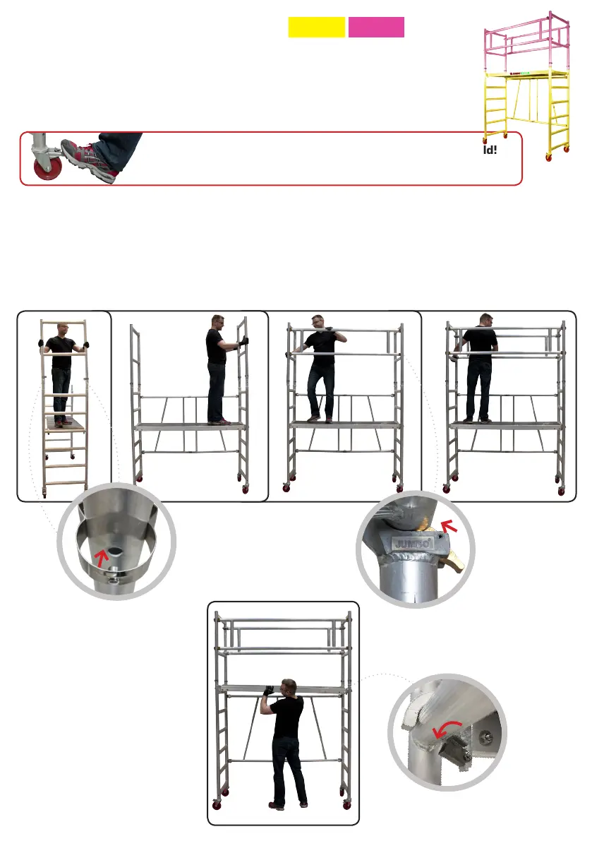 NOTE: Always lock all 4 castors before entering the scaffold!