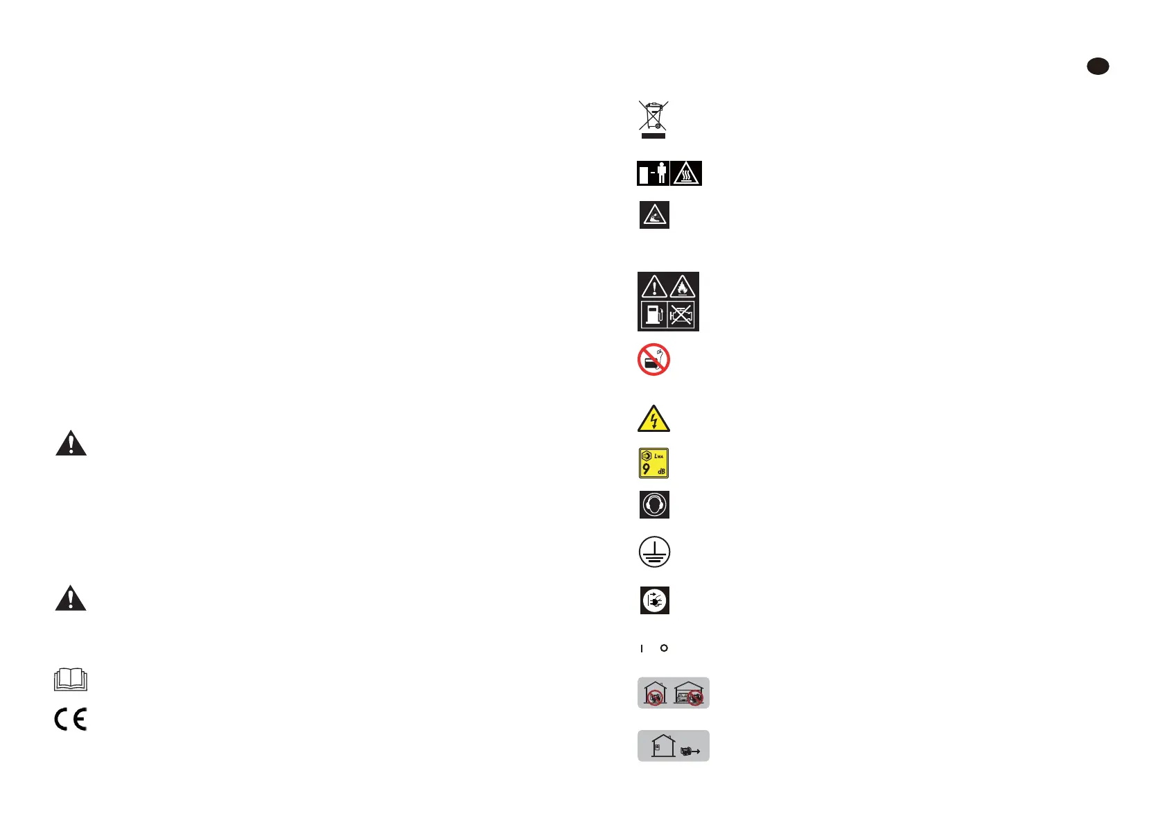 Niemals im Haus oder in teilweise geschlossenen Bereichen wie Garagen benutzen.