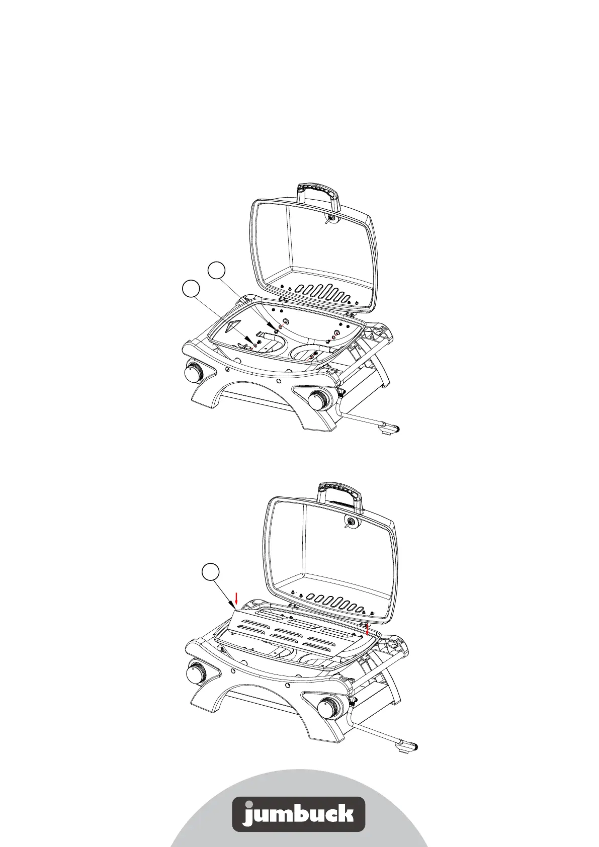 Secure the fire box to the leg stand using the 4 M6 x 12 screws (AA) and washers