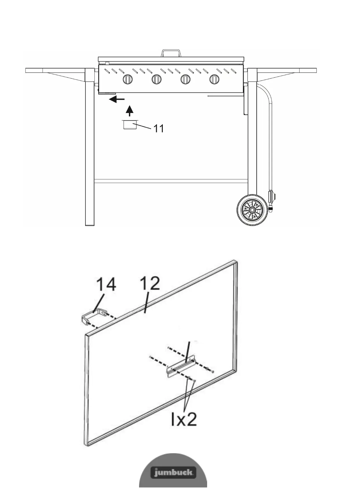 Assemble Bakelite Handle (Part 14) onto the Lid (Part 12) and Lid Hook (Part 13) as per illustration below.