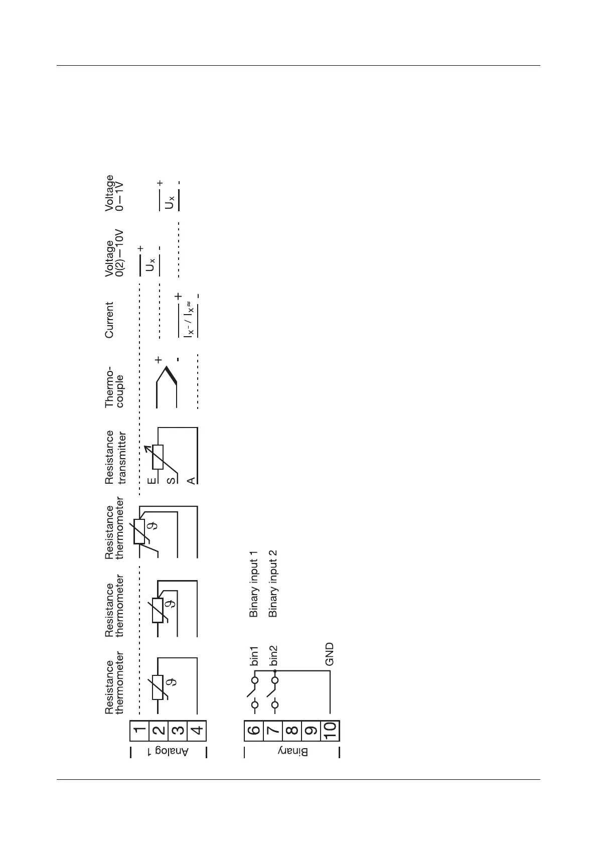 Analog input 1 and binary inputs 1+2 - terminal strip 2