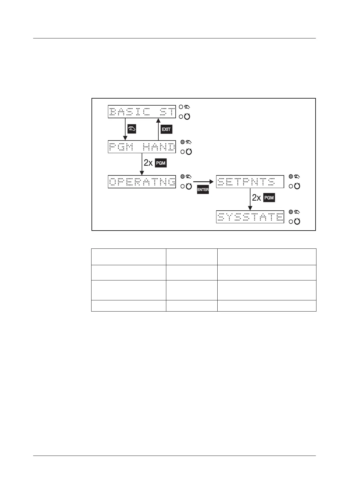 For start-up and testing, a setpoint, the states of the operating contacts and