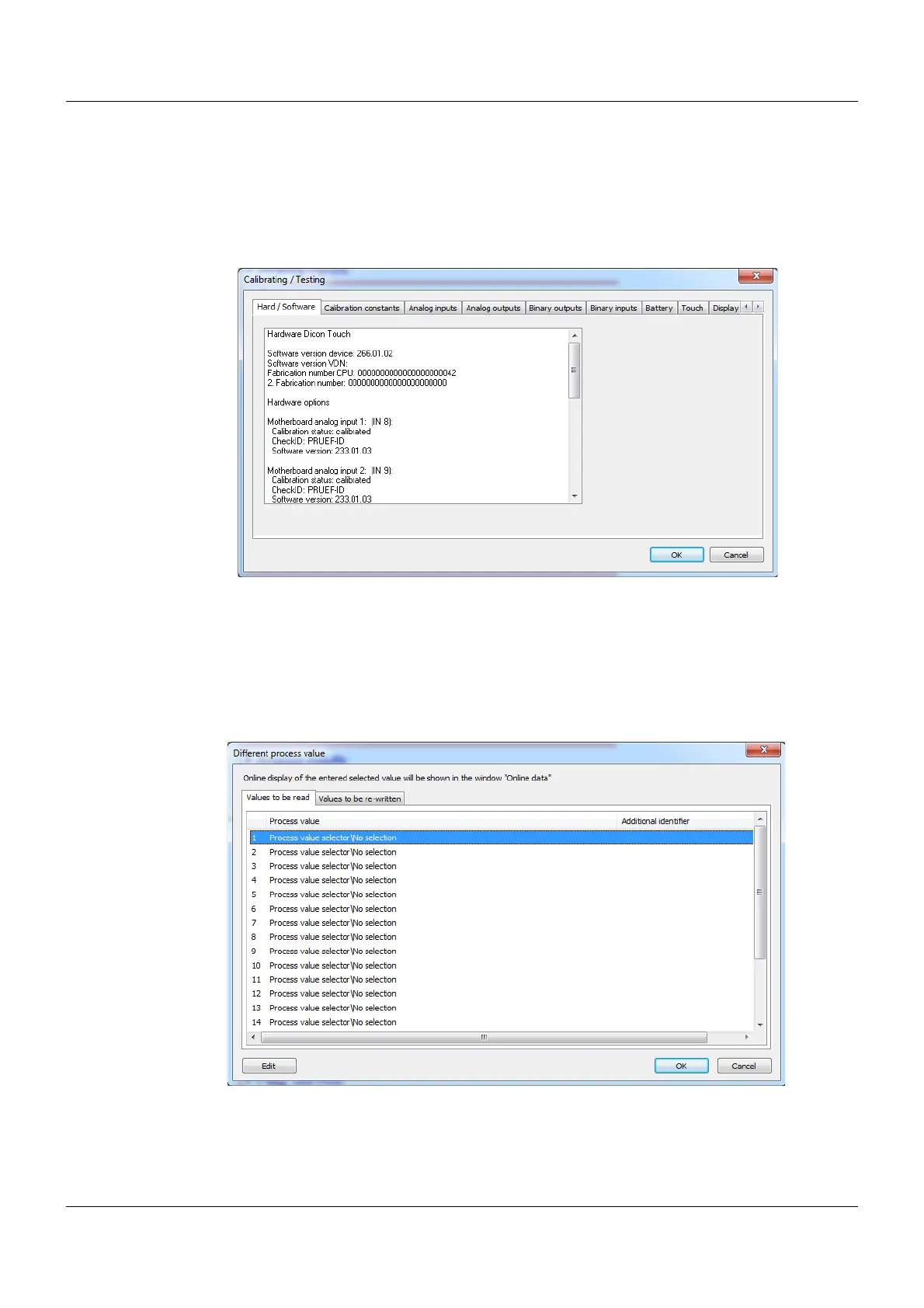 15.8 Different process values