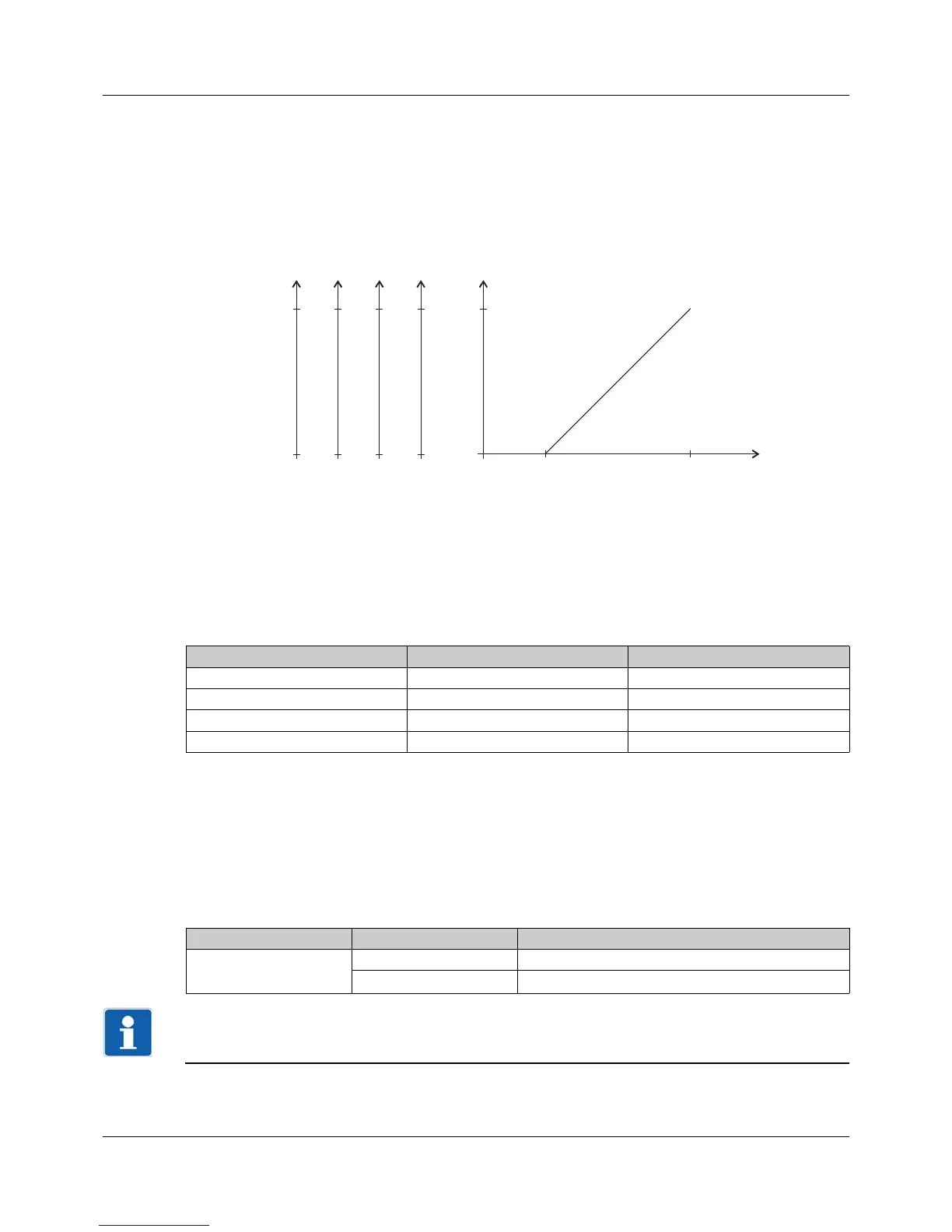 The following graphic shows the scaling for the example above with different output signals (y-axes).