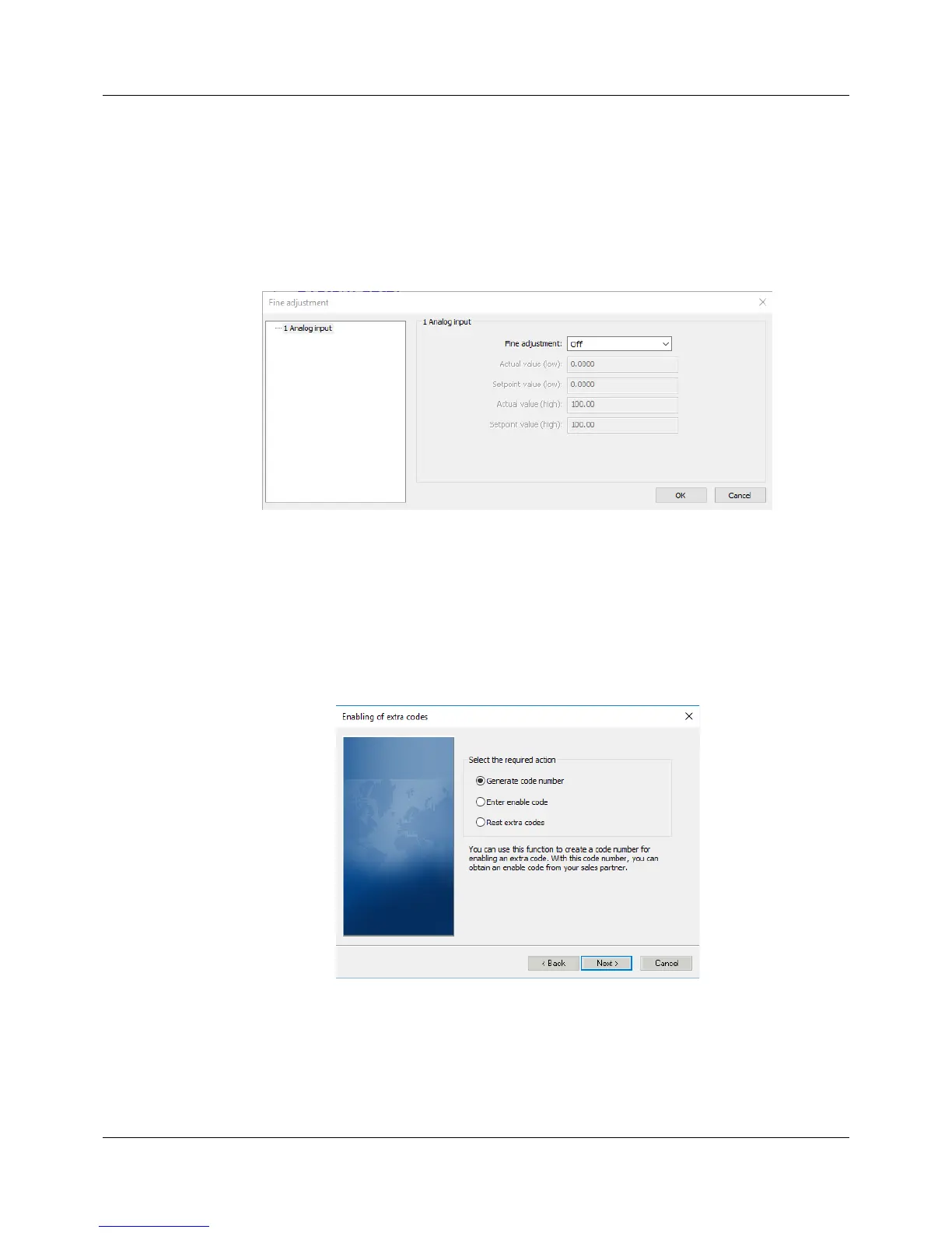 This function is identical to the fine adjustment in the device (Configuration > Analog input > Fine adjust-