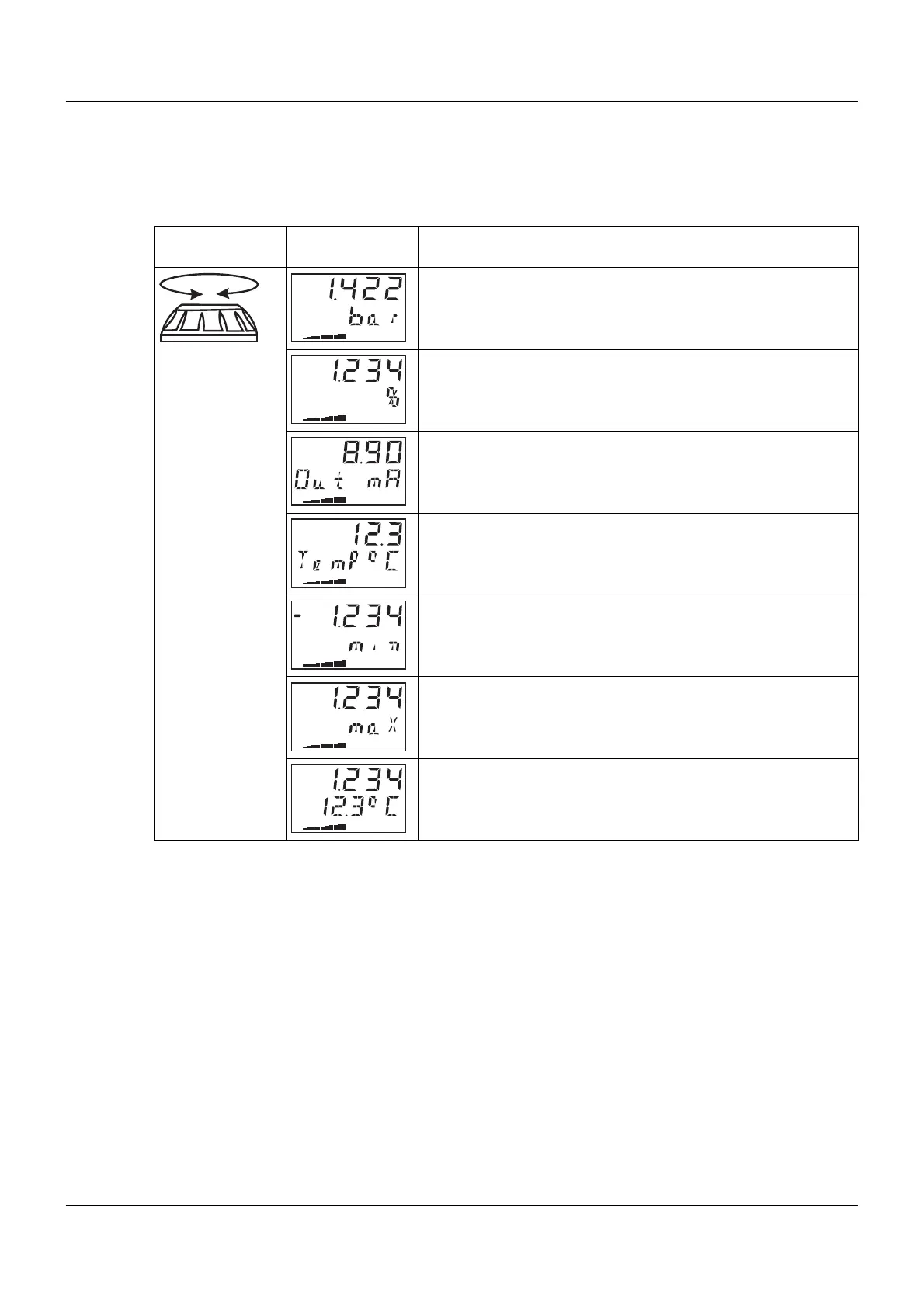 Displays the pressure with measuring unit