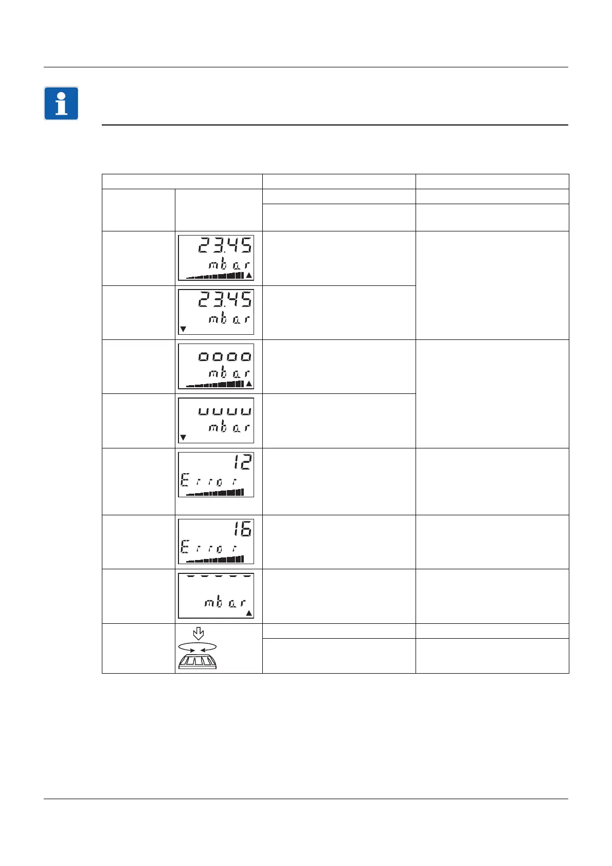 Display: Underrange, underpressure